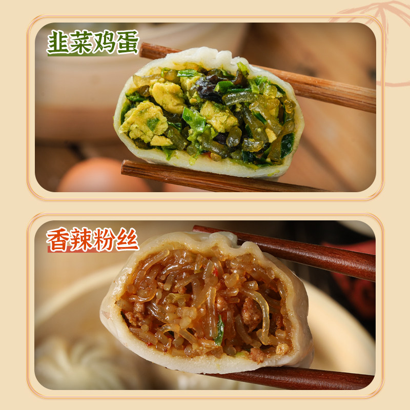 水晶粉丝薄皮包子半成品速食懒人食品小笼包食材鸡蛋年货香辣荠菜
