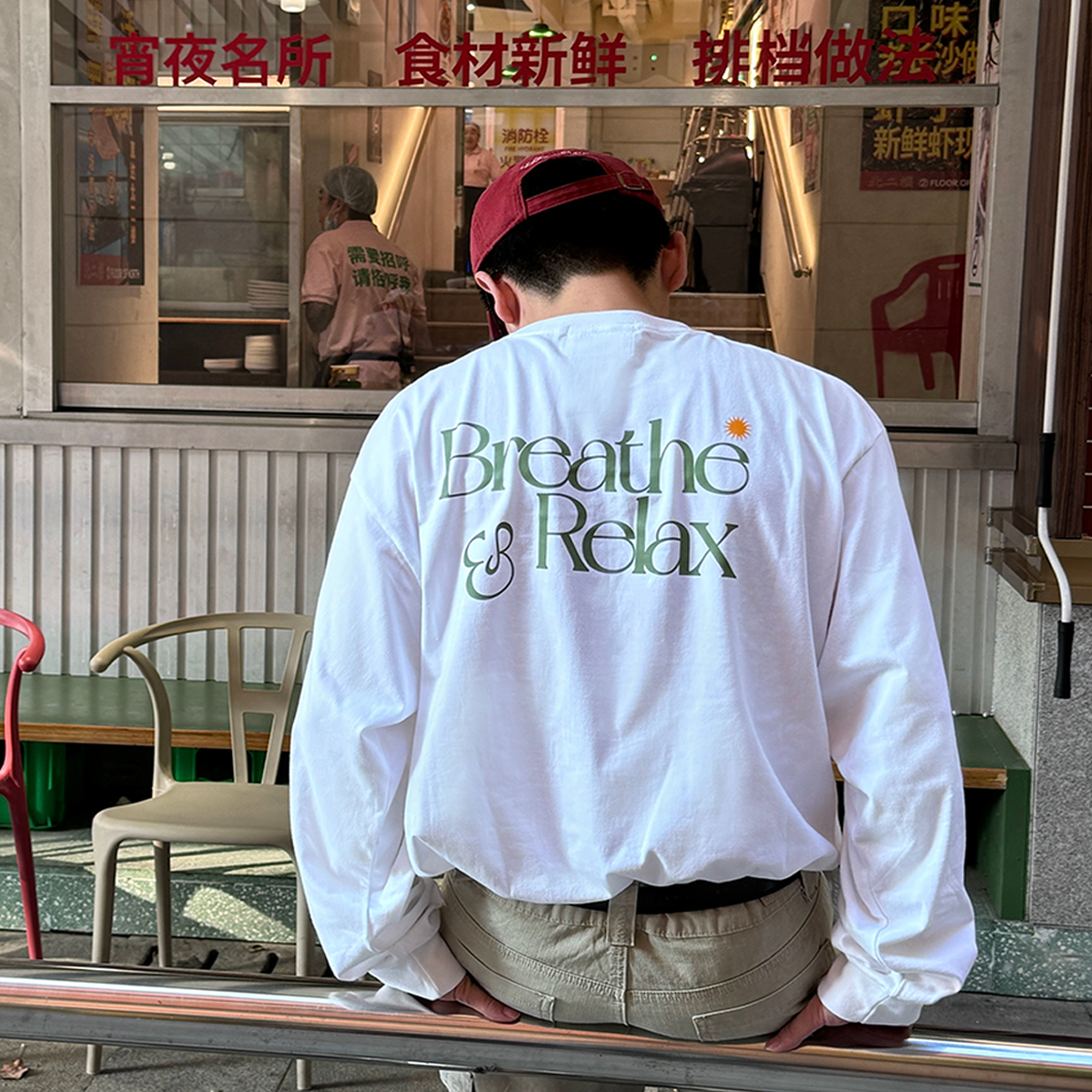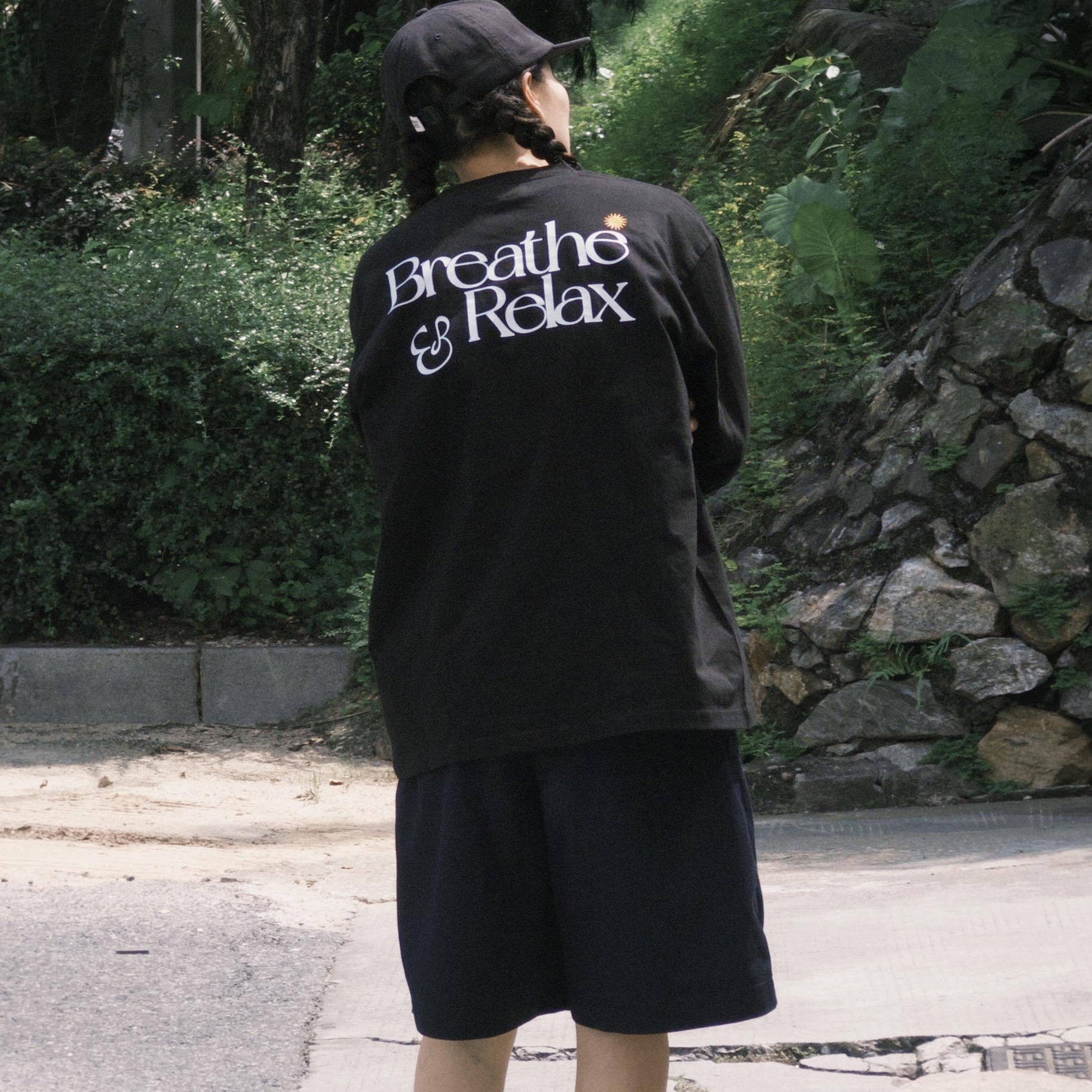 BreatheRelax呼吸放松 标准LOGO印花 重磅圆领休闲松驰潮长袖T恤