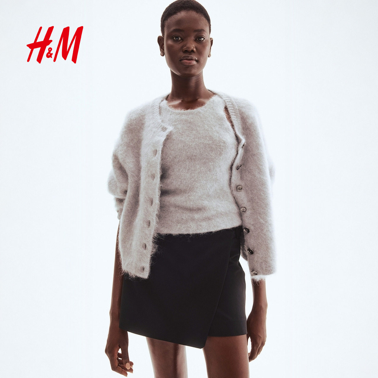 HM女装休闲裤2025年冬季新款裹身高腰休闲时尚通勤短裙裤1299686