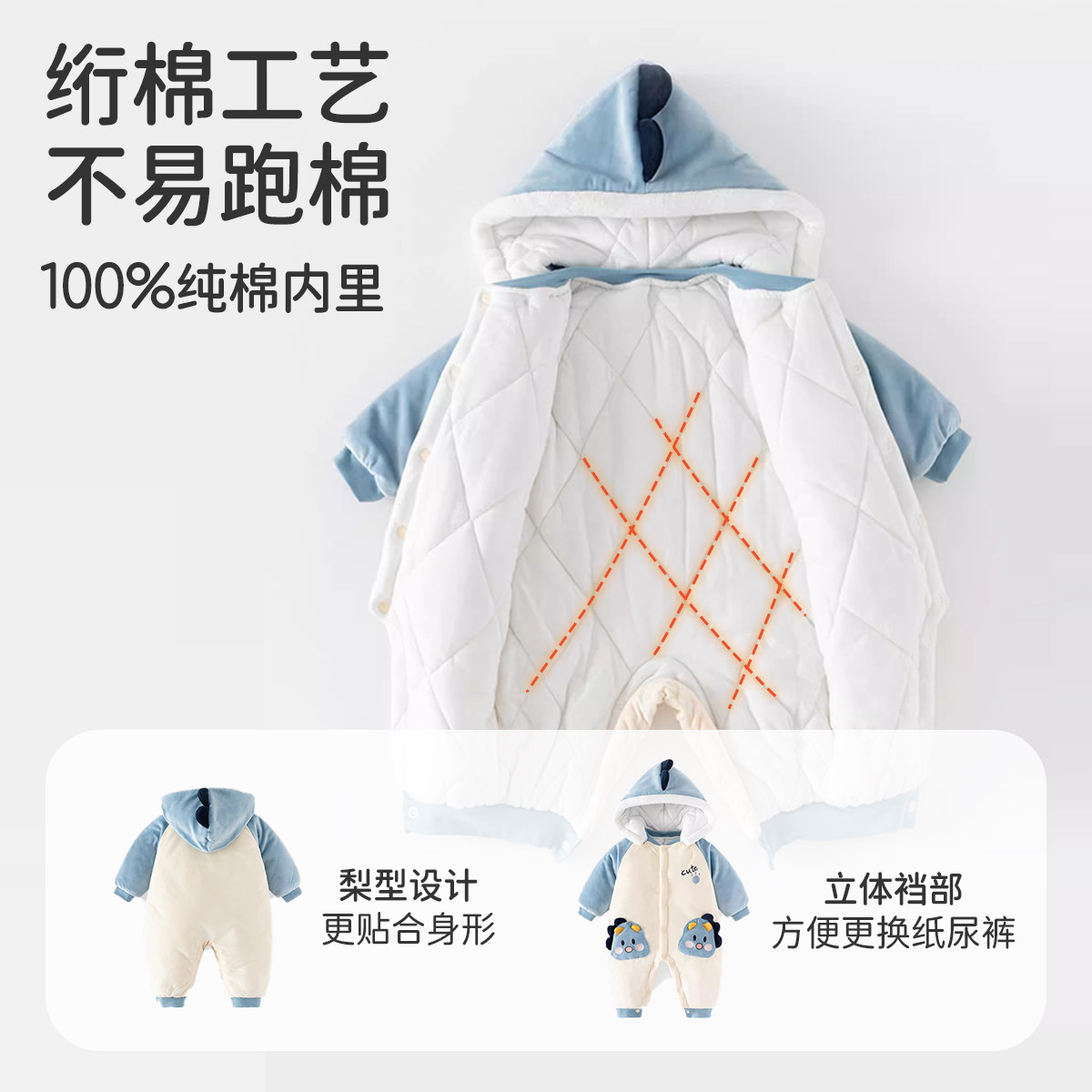 婧麒婴儿棉服冬装加厚保暖棉衣宝宝外出连体衣冬季婴幼儿夹棉衣服