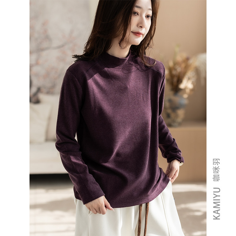 2025新款秋冬打底衫女文艺休闲纯色百搭复古宽松气质女装上衣内搭