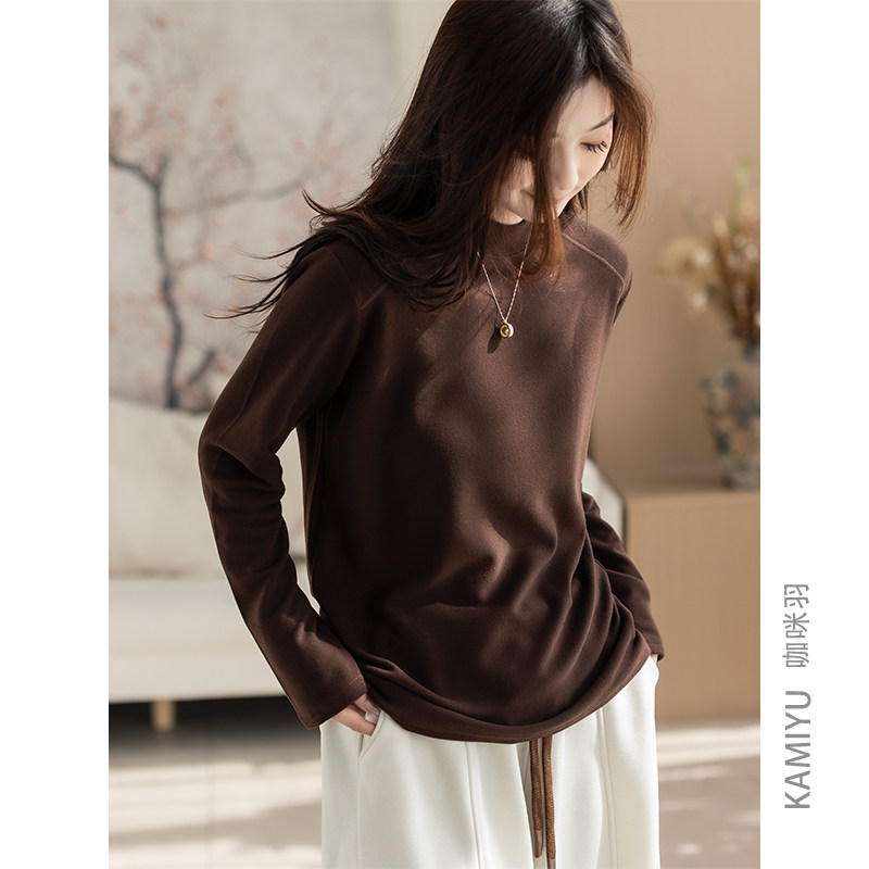 蕉下摇粒绒打底衫女秋季新款半高领保暖加绒亲肤内搭上衣肌底衣