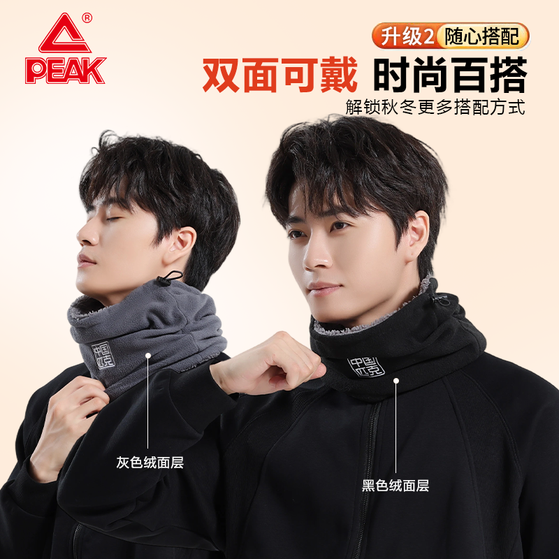 匹克骑行保暖围脖套男款冬季骑车加绒加厚护颈防风面罩围巾女黑色
