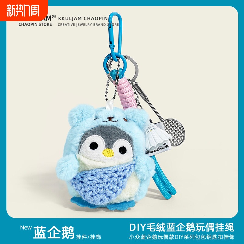 卡通毛绒小企鹅钥匙扣玩偶背书包包网球拍挂件公仔挂饰情侣高级感