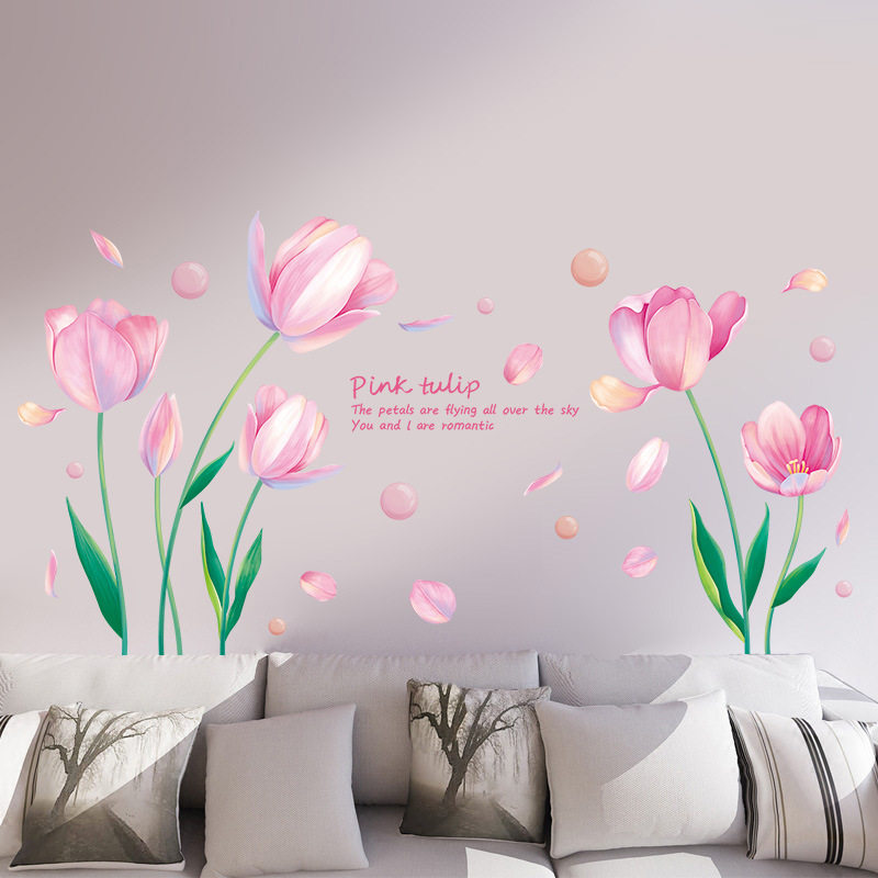 XY9036粉红郁金香卧室客厅电视背景墙玄关店铺装饰自粘墙贴