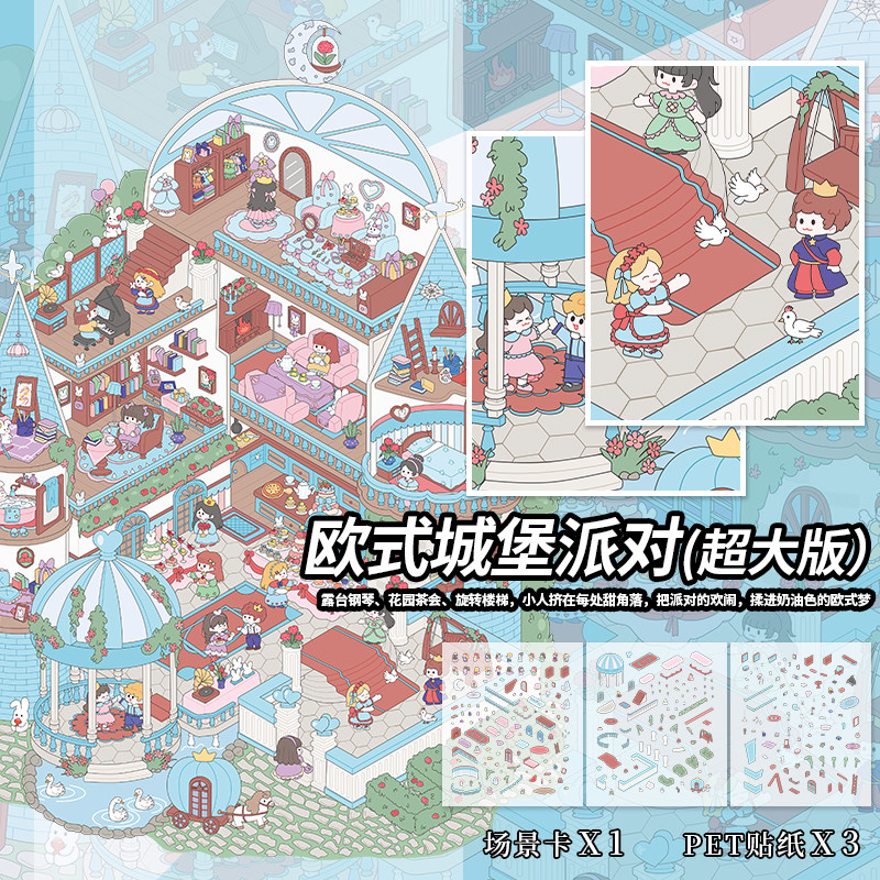 微缩场景合集造景贴纸大号可爱卡通立体小屋女孩儿童玩具手工diy手帐贴画