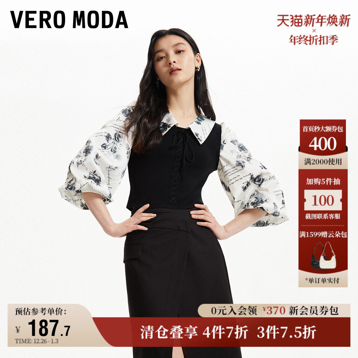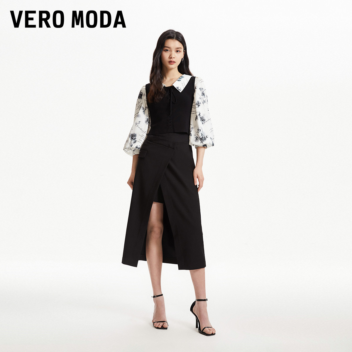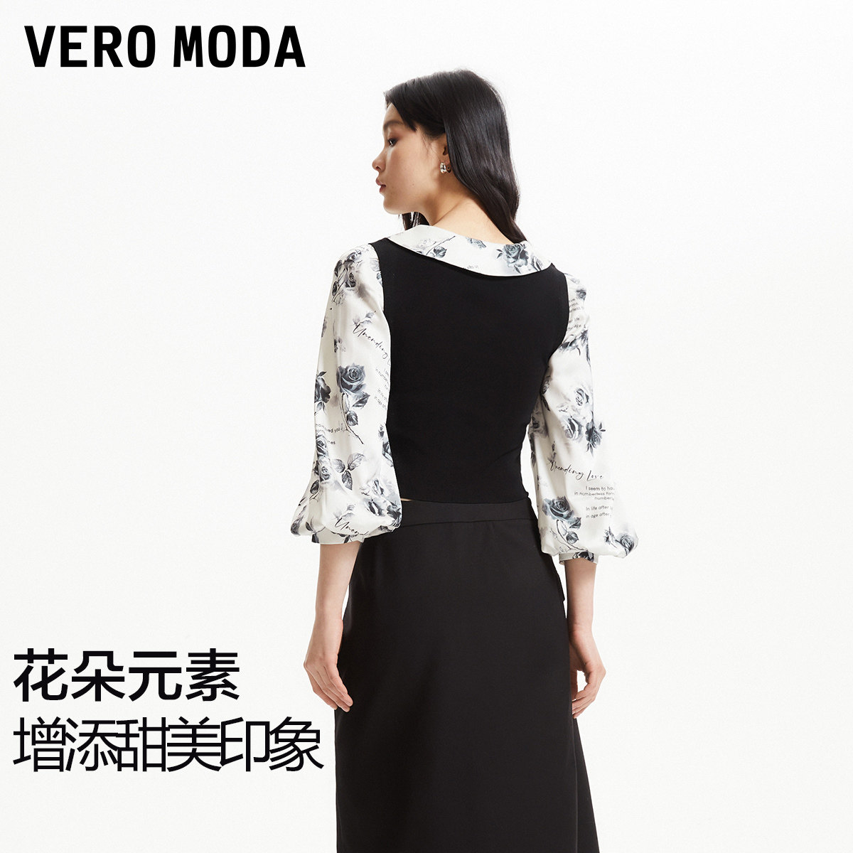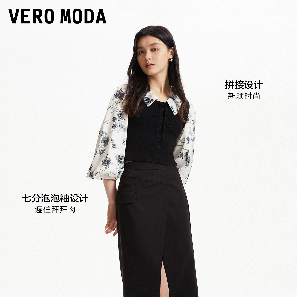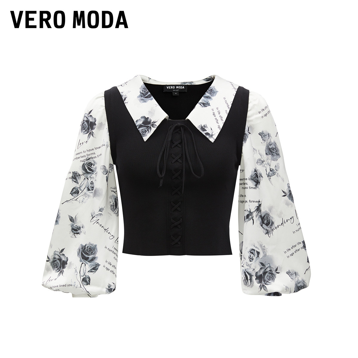 Vero Moda奥莱上衣女秋冬新款优雅甜美拼接泡泡袖显瘦时尚衬衫