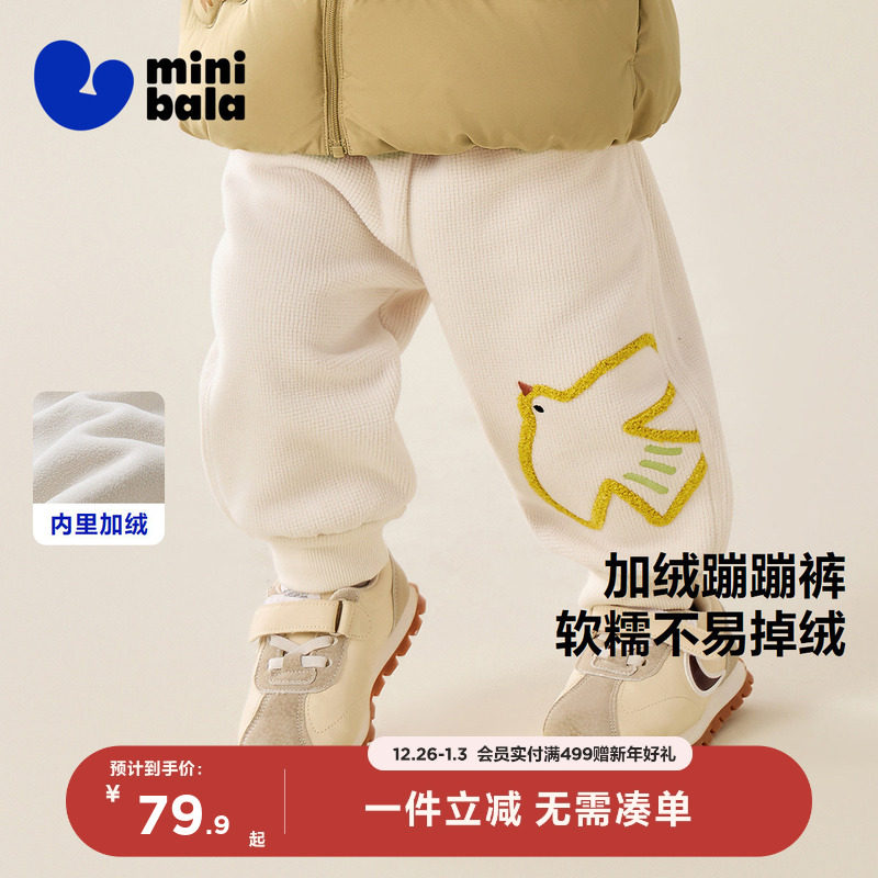 迷你巴拉巴拉男女童摇粒绒裤子婴儿卫裤2025冬季新品宝宝加绒长裤