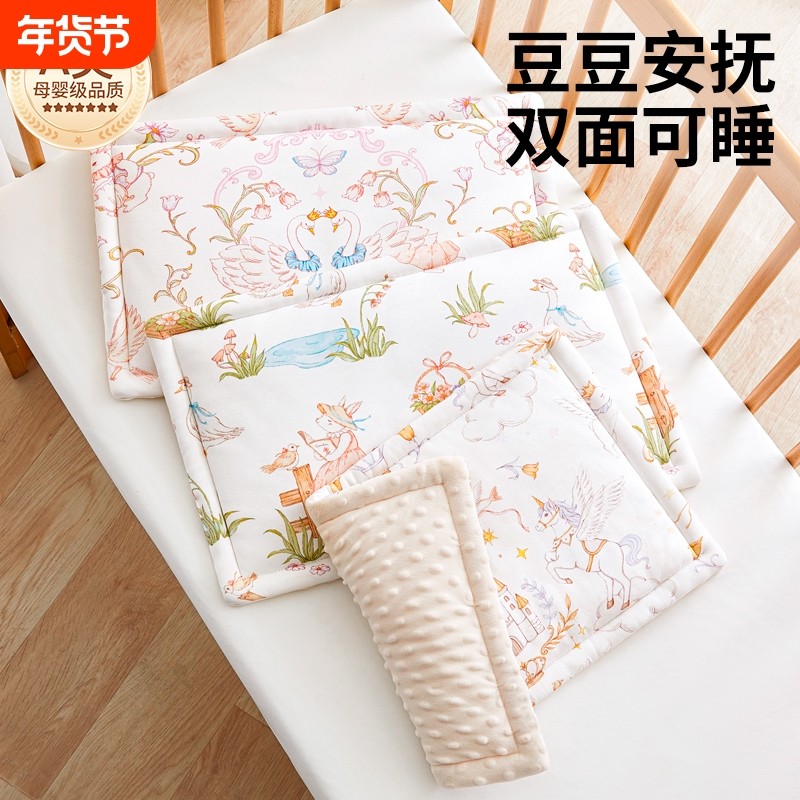 新生婴儿枕头0-1-3岁平枕小月龄宝宝枕巾6个月以上云片枕秋冬枕垫