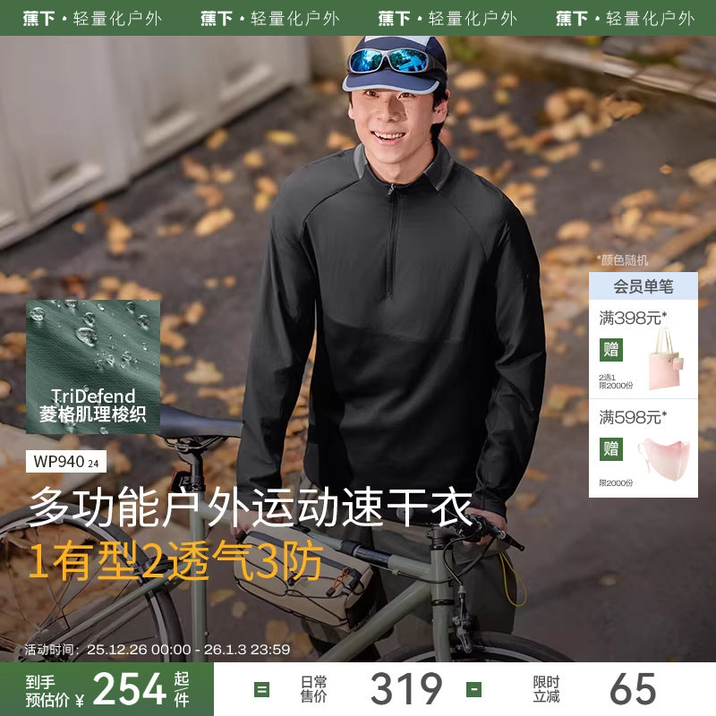 蕉下男士长袖速干T恤宽松半拉链百搭运动上衣户外透气高弹秋卫衣