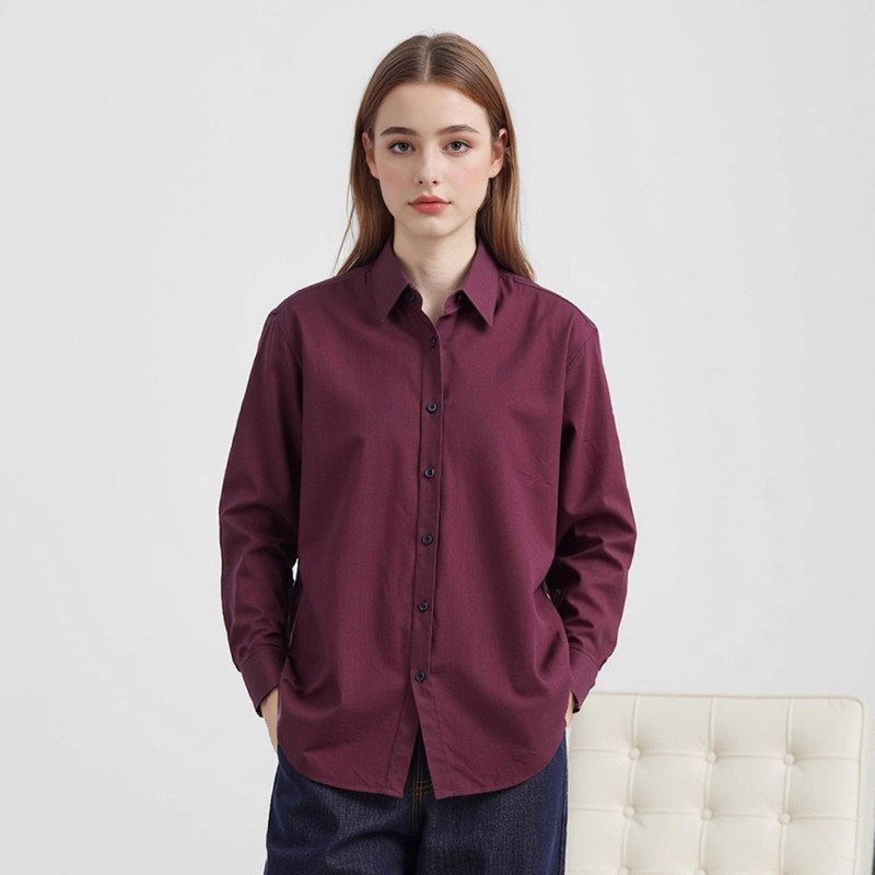 纯棉DP免烫白衬衫女定制绣LOGO春秋修身100支职业抗皱长袖衬衣