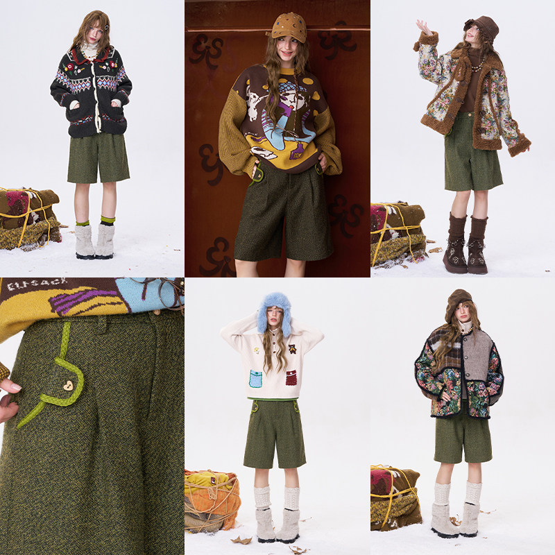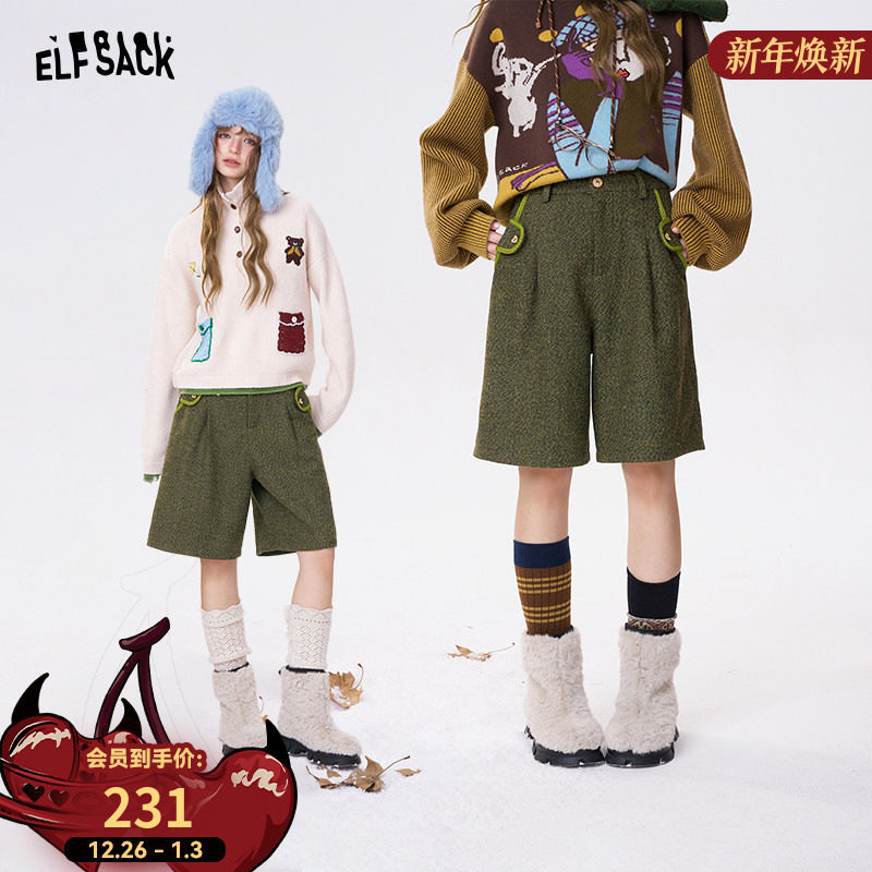 妖精的口袋复古小香风五分裤女2025年冬季新款小个子宽松休闲裤子