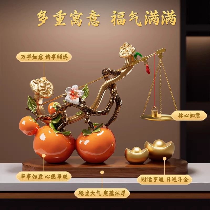 柿柿称心如意摆件客厅入户玄关酒柜高档搬家进宅乔迁之喜结婚礼物