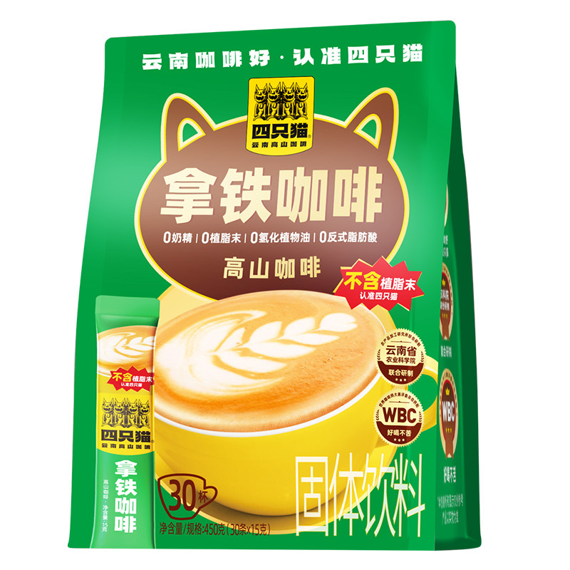 四只猫咖啡拿铁特浓卡布奇诺正品三合一速溶0植脂末燕麦饮料回购