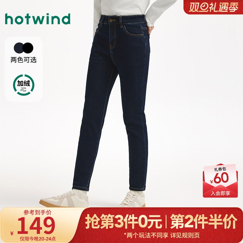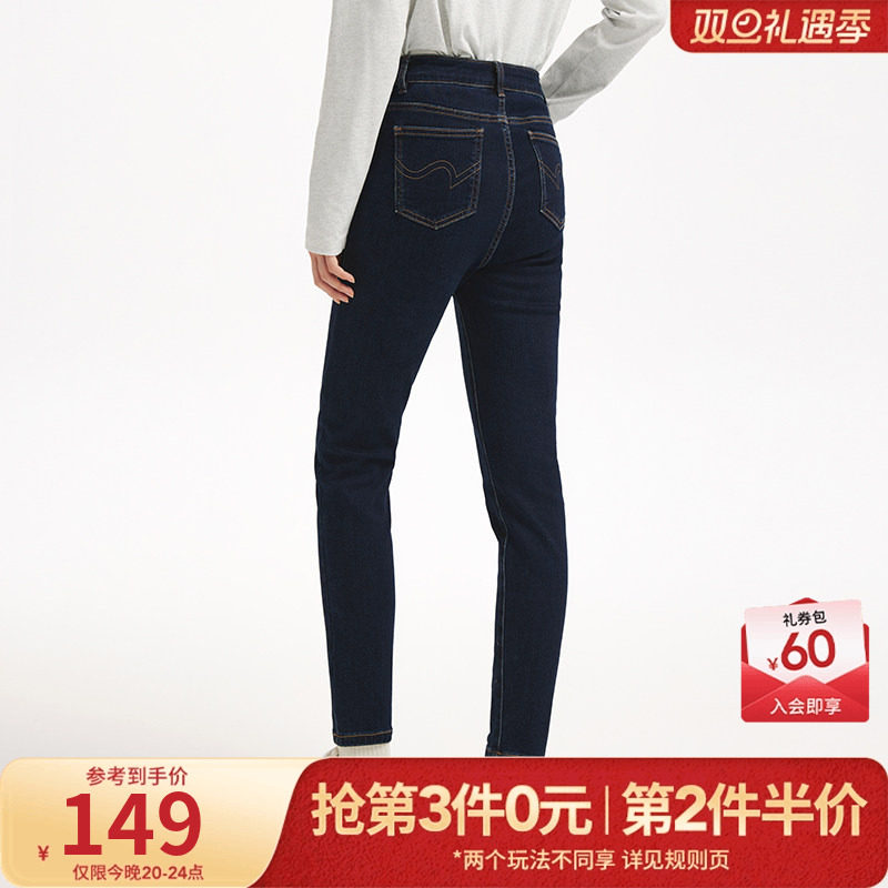 热风2025年冬季新款女士经典简约基础百搭小脚牛仔裤