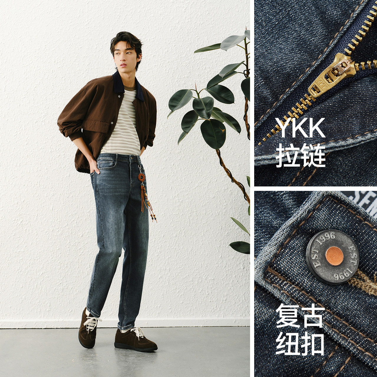 森柔牛仔森马牛仔裤男小脚裤复古水洗长裤夏季裤子直筒显高显腿长