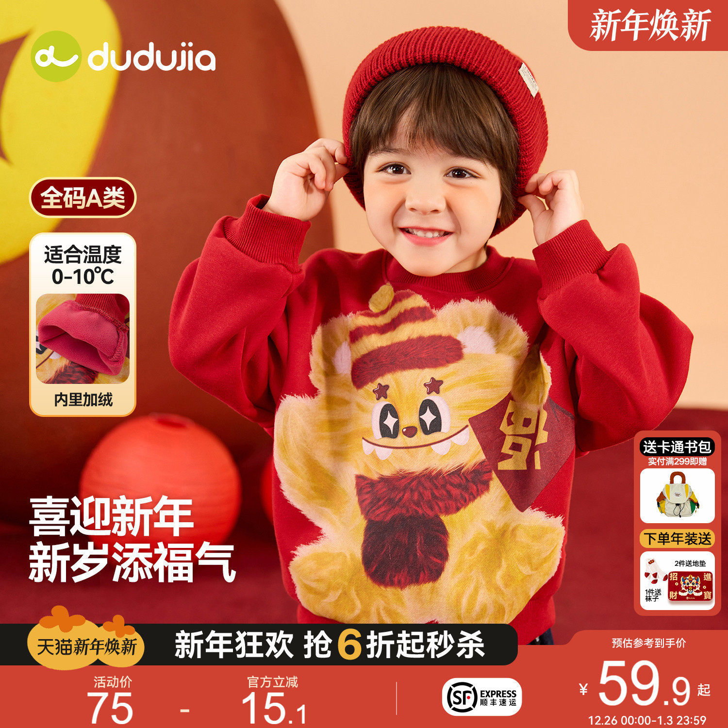 嘟嘟家儿童卫衣红色冬季加绒宝宝上衣男童拜年服女童新年喜庆唐装
