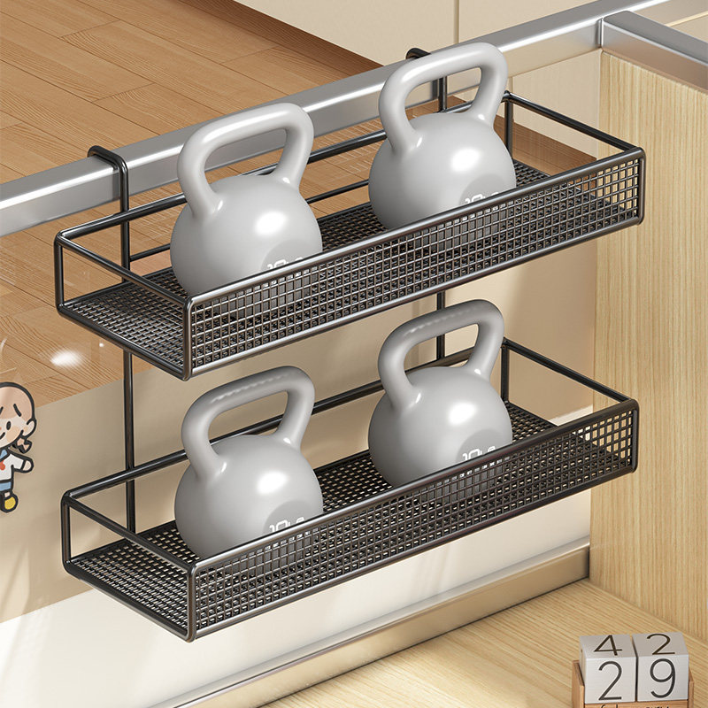 厨房吊柜门下置物架悬挂吊篮挂架分层储物架挂纸巾保鲜膜收纳架子