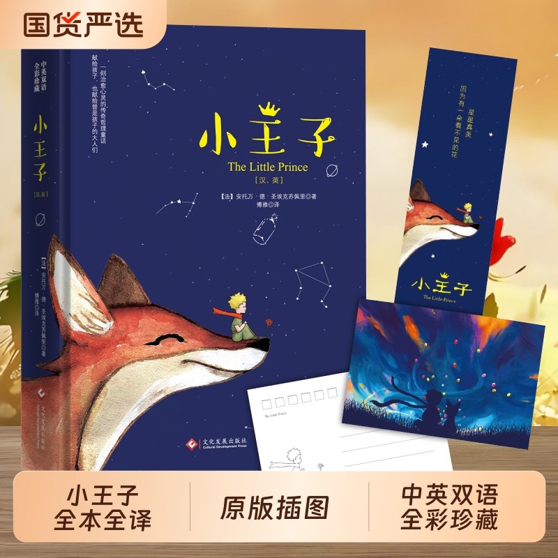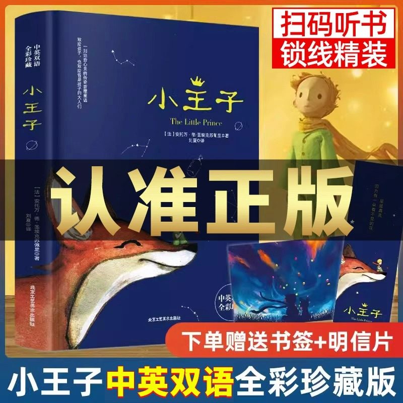正版小王子书中英文双语版英汉对照TheLitlePrince原版圣埃克苏佩里无删减世界文学名著小说英文读物中小学生阅读月亮经典精装文艺