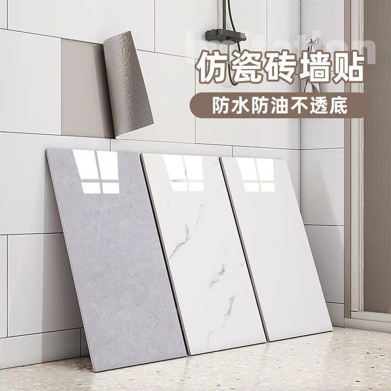仿瓷砖铝塑板墙贴大理石纹墙面保护板自粘厨房卫生间防水防潮墙板