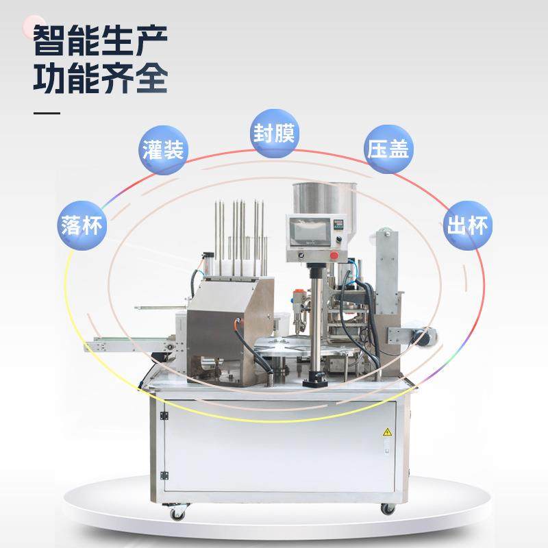XBG-900×2自动圆盘封杯机双头灌装真空压膜番茄酱酸奶膏液封膜机