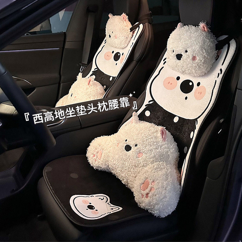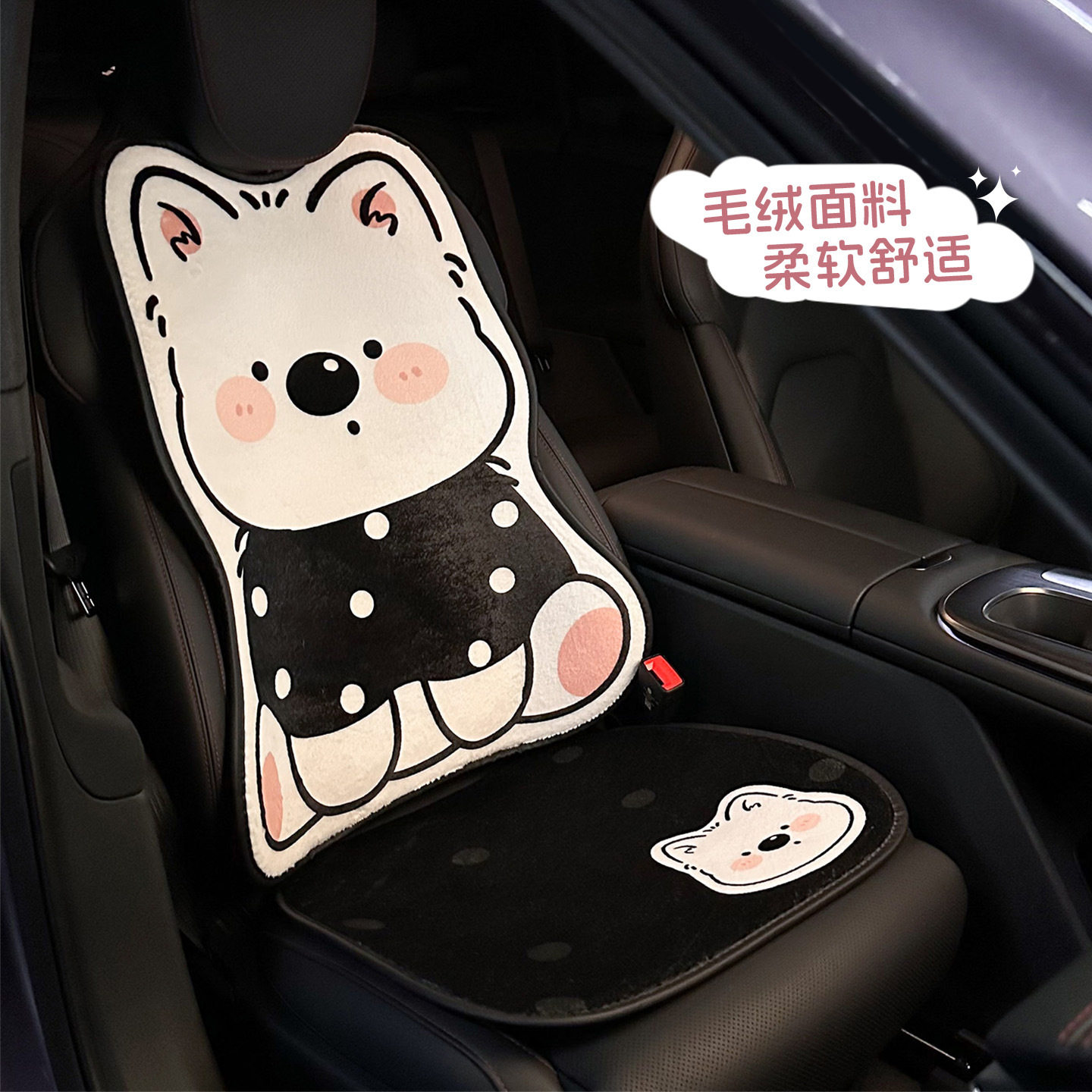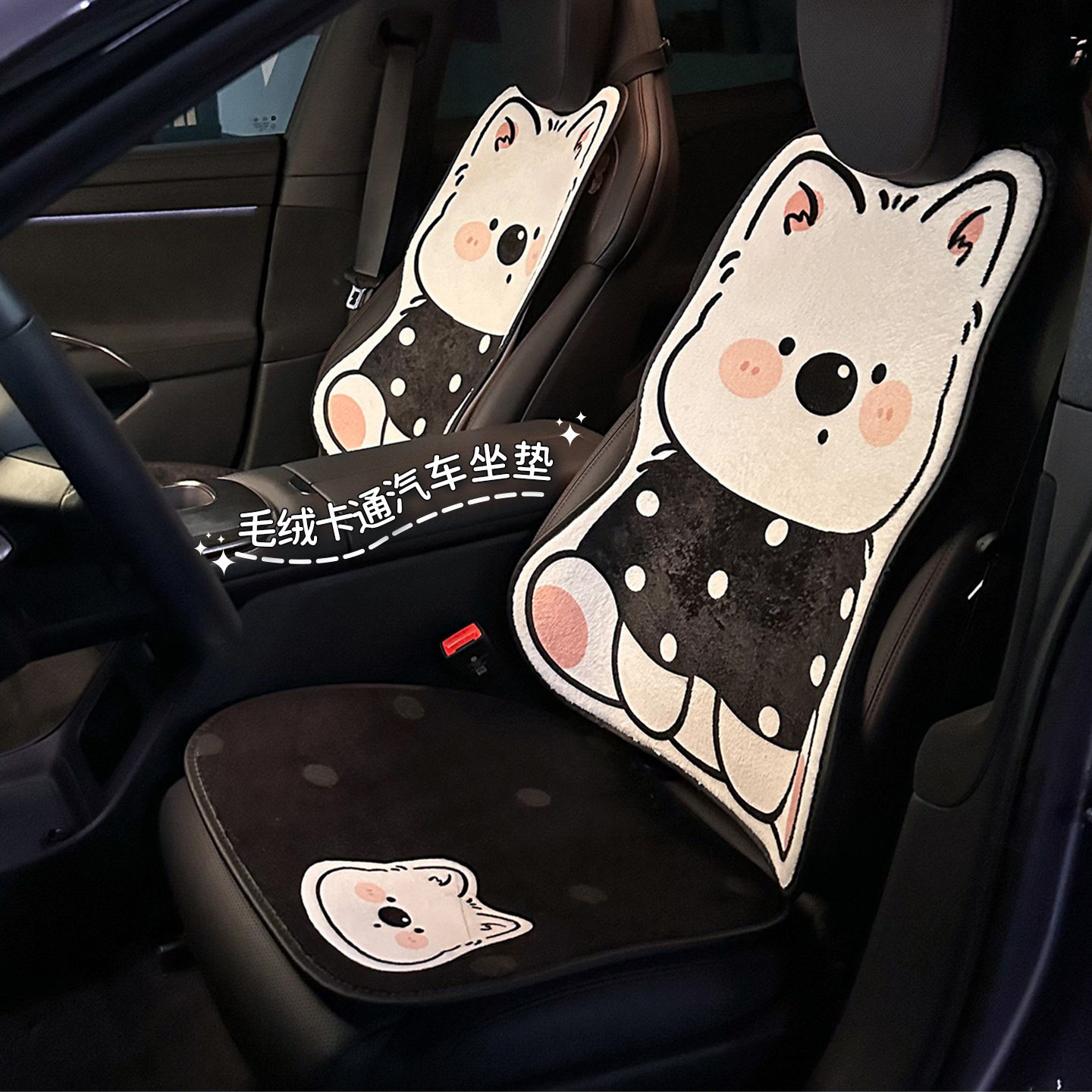 汽车坐垫冬季毛绒保暖加热车载座椅坐垫可爱小狗网红车内装饰座套