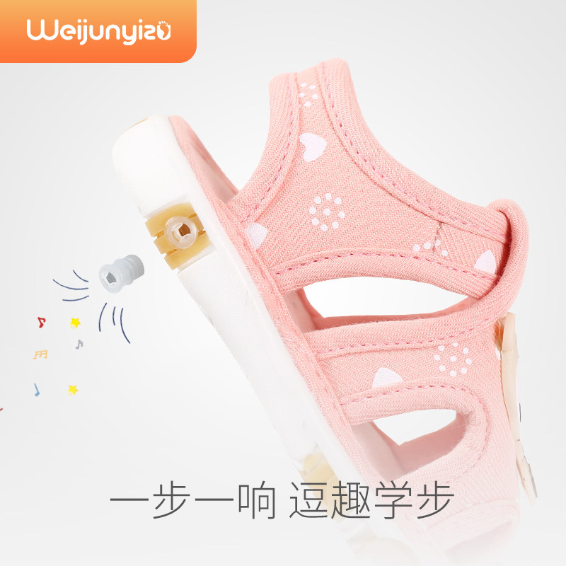 女宝宝凉鞋夏季婴儿布鞋防滑软底叫叫鞋学步鞋男宝宝鞋子0一1-3岁