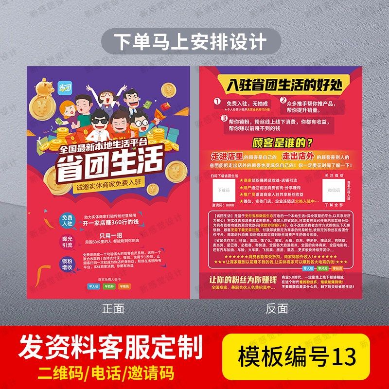省团宣传单省团生活宣传单a4推广商户宣传单页彩页定制制作印刷新