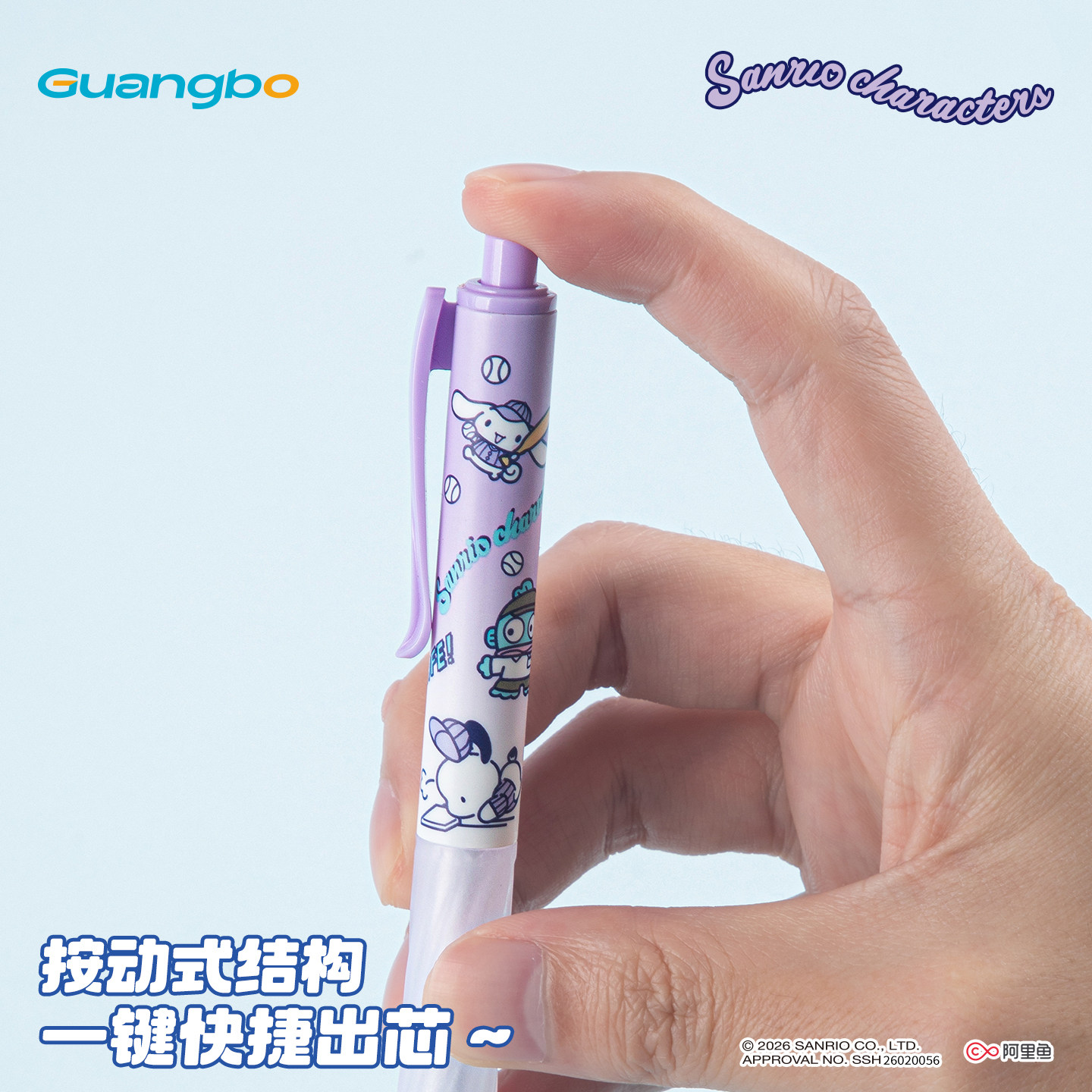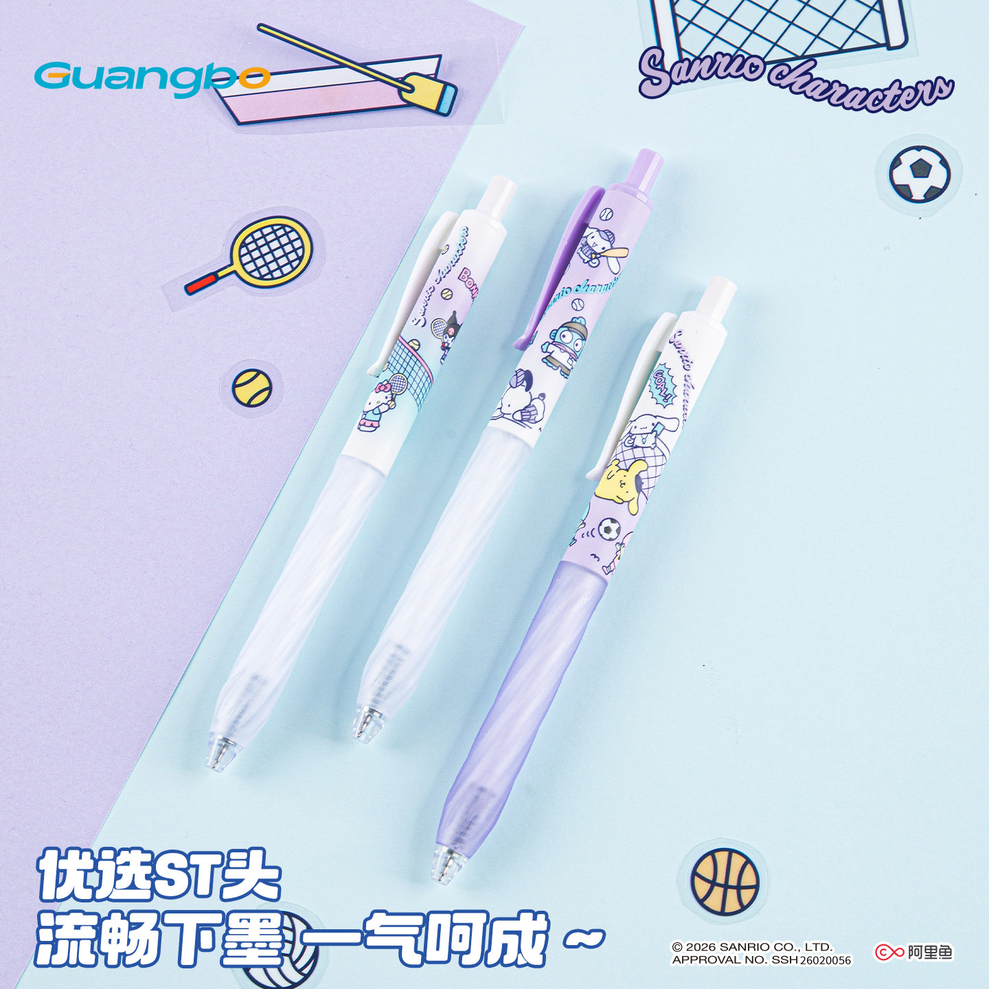 广博三丽鸥刷题笔果冻中性笔ST头按动笔帕恰狗速干笔学生专用墨水笔黑色水笔黑笔可擦笔库洛米高颜值文具笔
