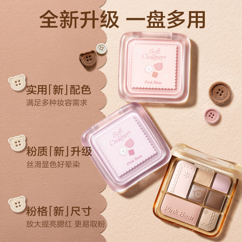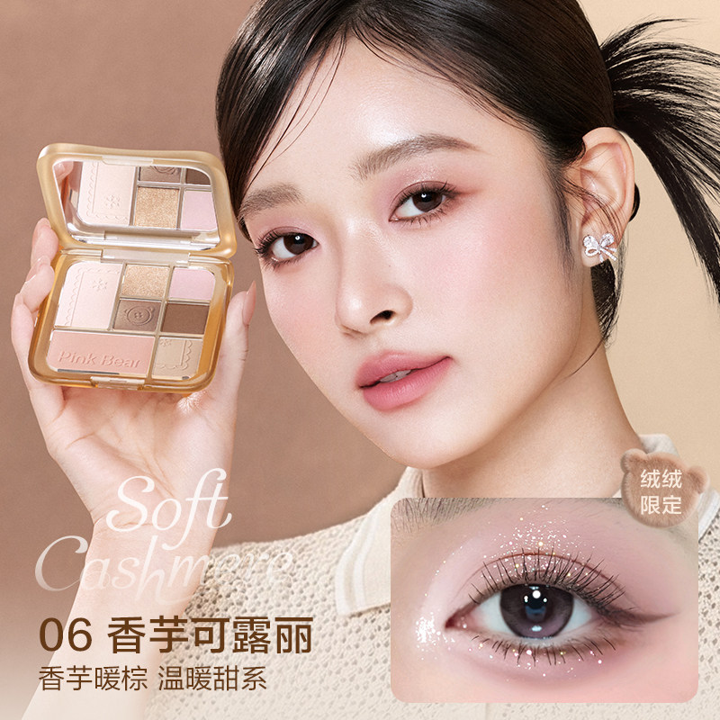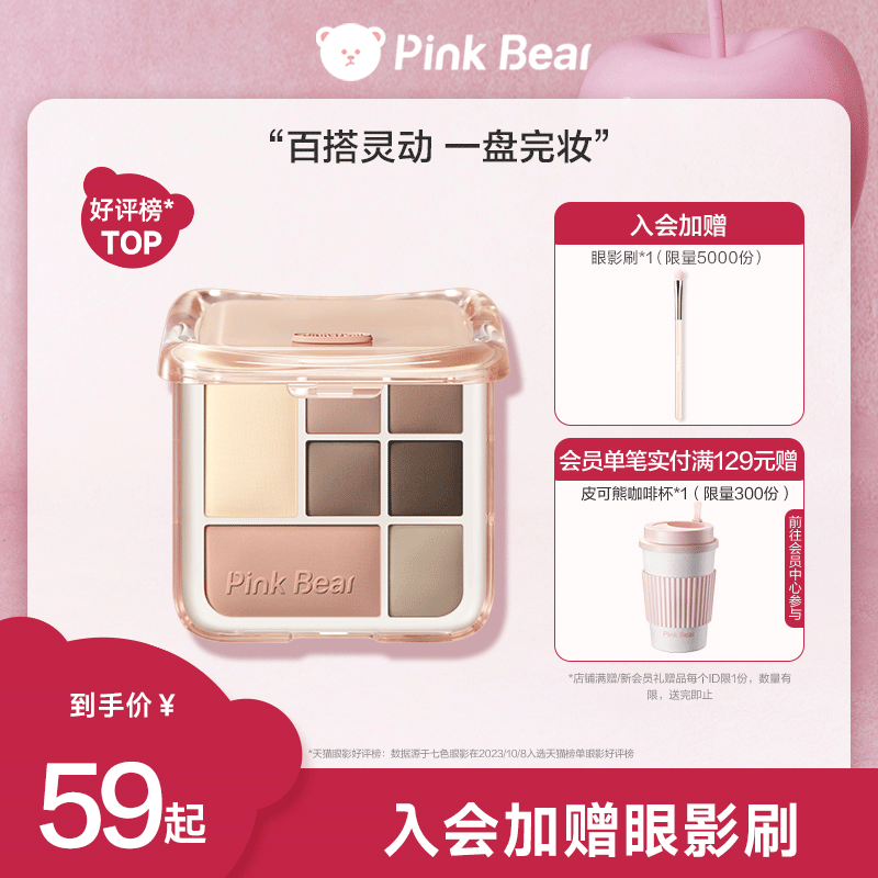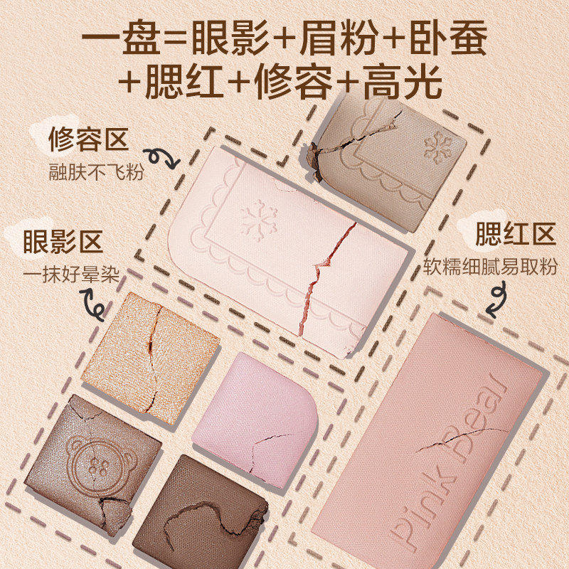 pinkbear皮可熊七色眼影盘哑光修容综合盘黄油小熊女生日礼物日常