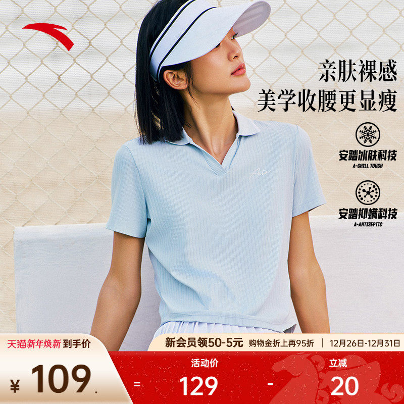 安踏冰丝polo衫丨翻领短袖女夏季新款修身显瘦休闲网球服运动上衣
