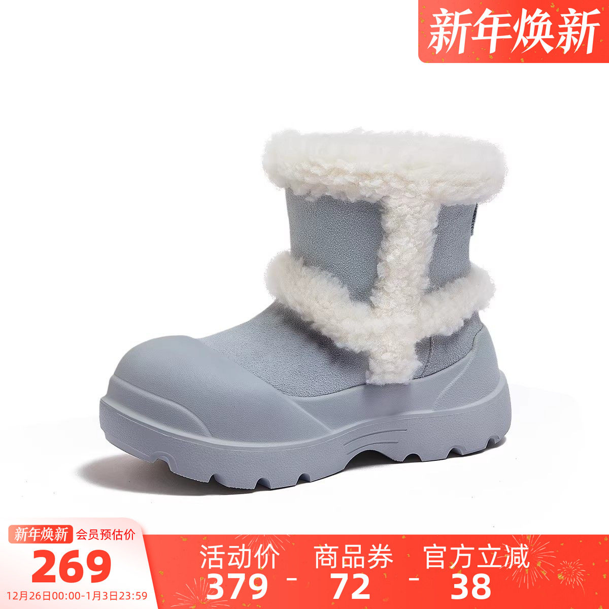 15HZ的鲸厚底雪地靴女2025新款防滑棉鞋女一脚蹬冬季雪地棉女鞋子