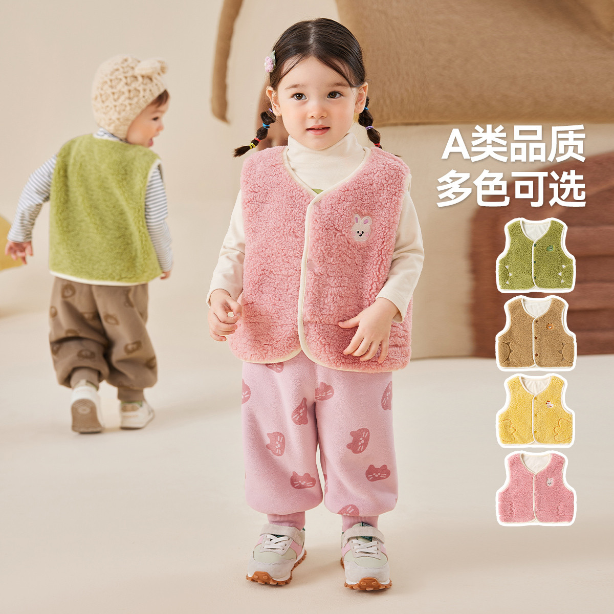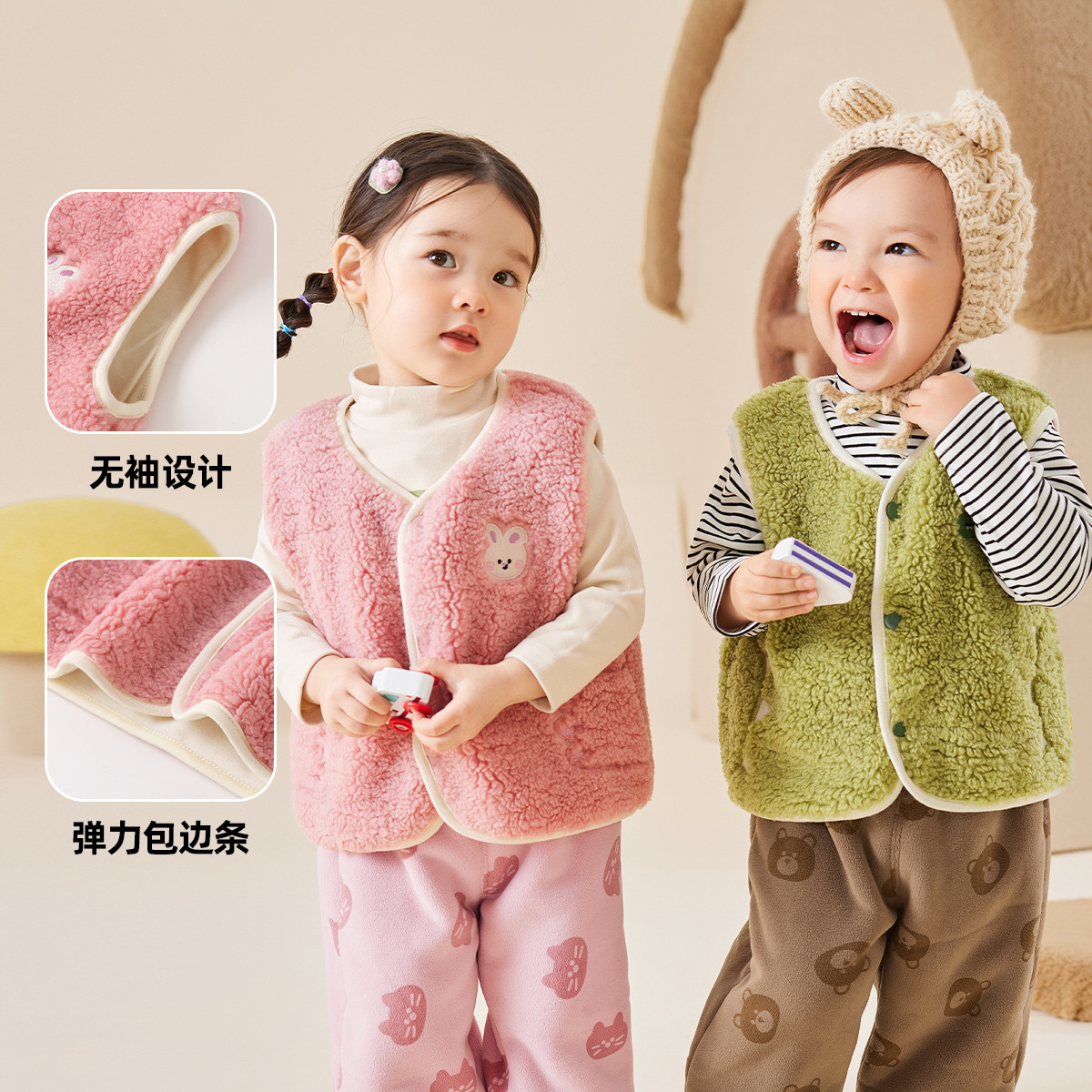 小猪大卫男女宝宝贴身马甲可爱造型恐龙狐狸颗粒绒磨毛马夹1-3岁