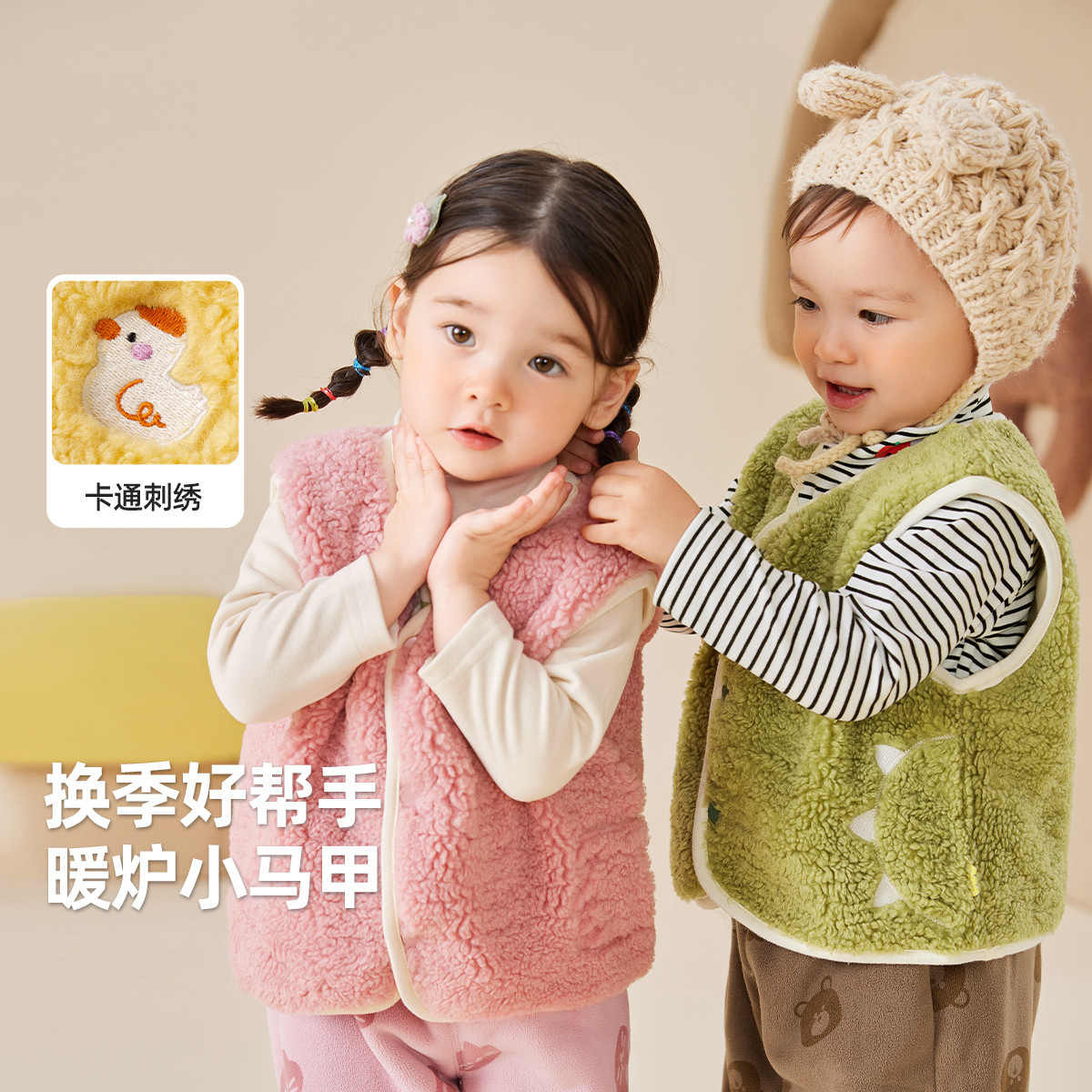 嘟嘟家宝宝马甲冬季婴儿卡通小衣服冬装儿童加绒上衣冬款洋气坎肩