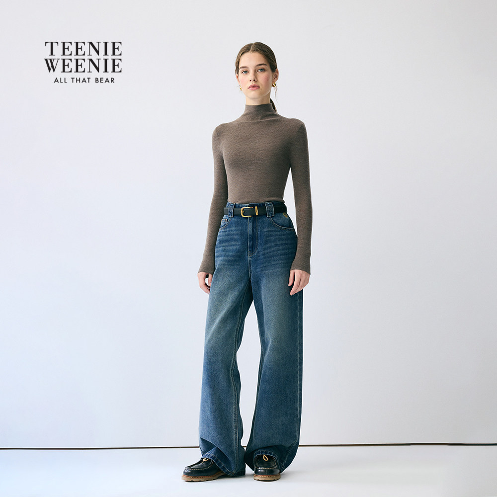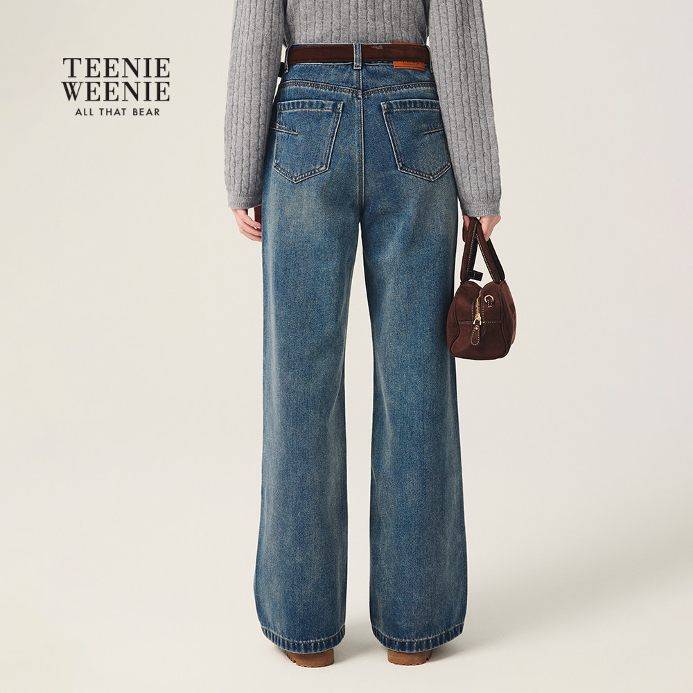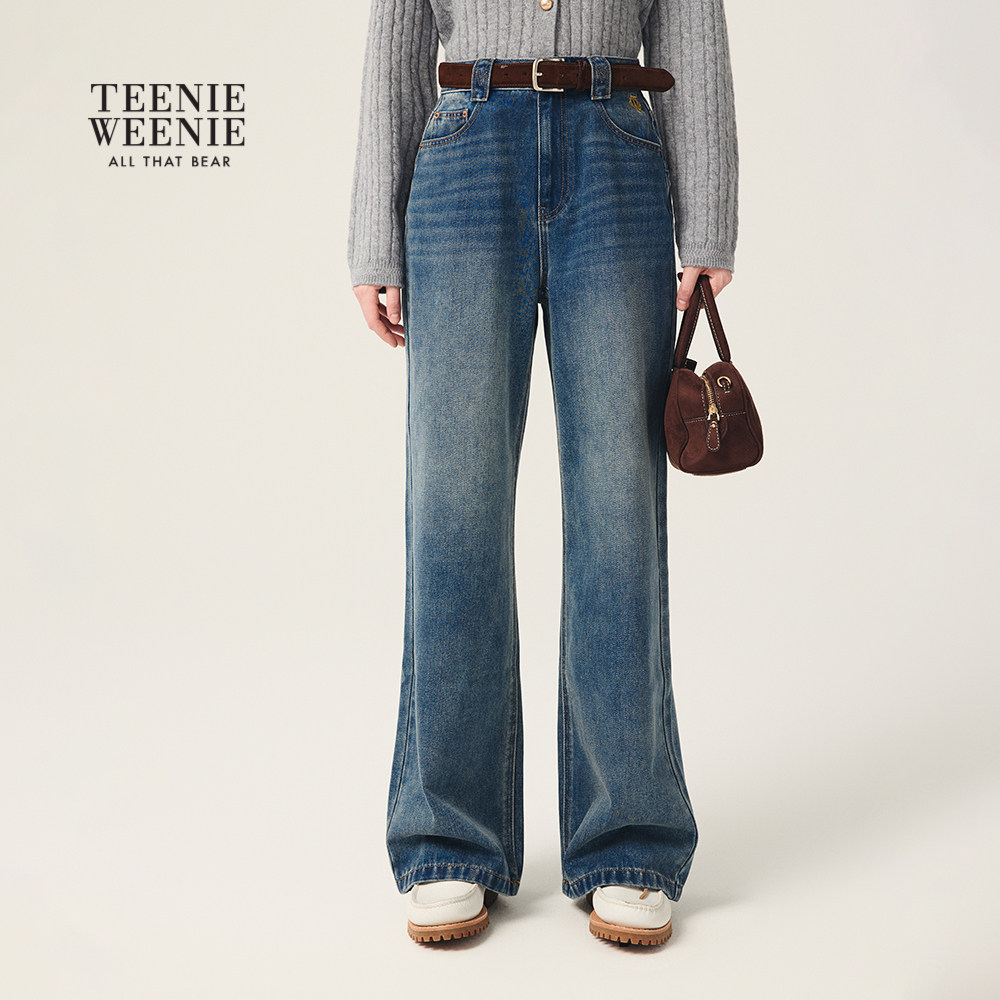 TeenieWeenie小熊女装牛仔裤秋冬季复古时尚简约松弛直筒裤长裤