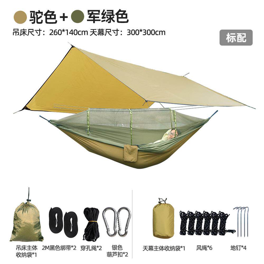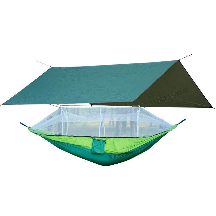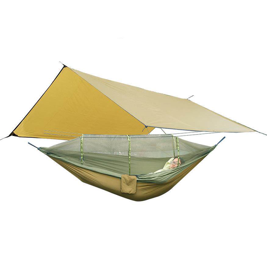途尚游跨境防蚊吊床露营配遮阳棚方形天幕尼龙布三彩带蚊帐吊床