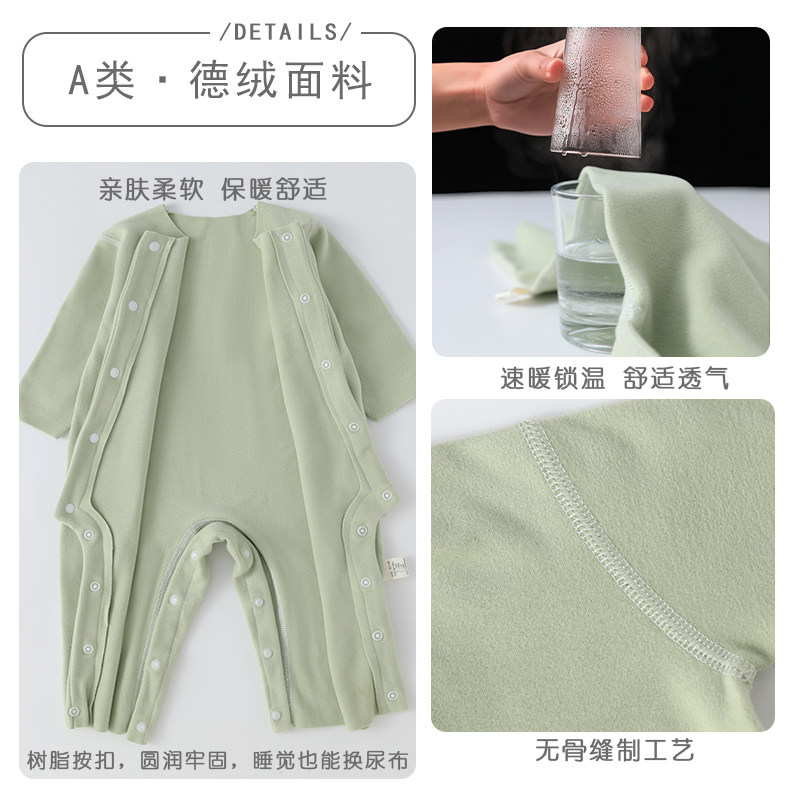 婧麒婴儿衣服秋冬德绒连体衣男女宝宝发热保暖新生儿打底睡衣冬款
