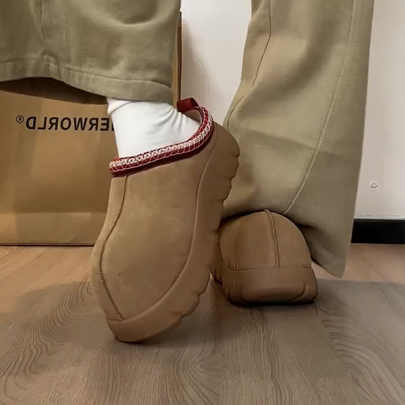 卡皮巴拉真皮包头厚底雪地靴女2025冬季新款加绒加厚防滑保暖拖鞋