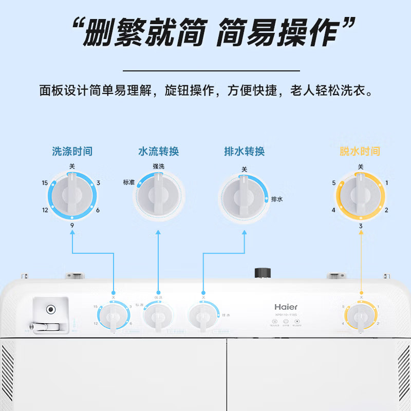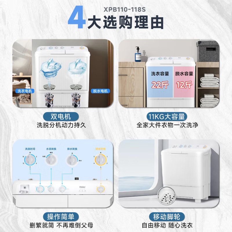 海尔半自动11公斤10/12/13公斤洗衣机家用双缸双桶大容量漂洗新款
