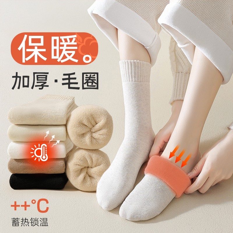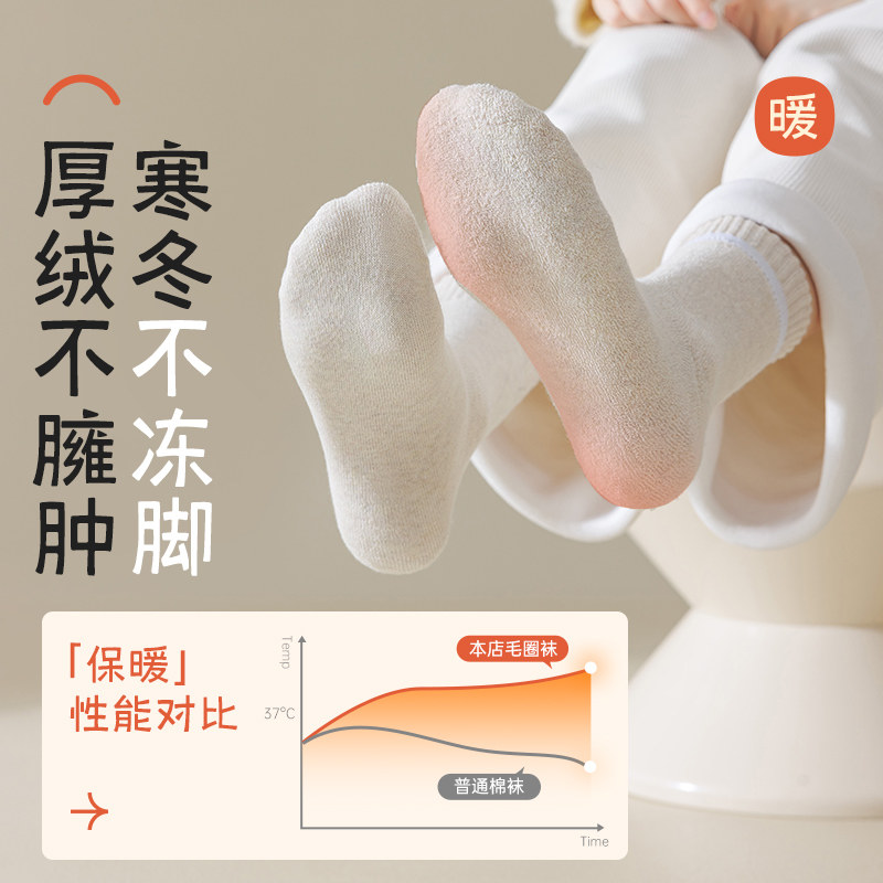 袜子女秋冬季中筒袜加绒加厚保暖毛圈袜月子袜冬天羊毛长筒居家