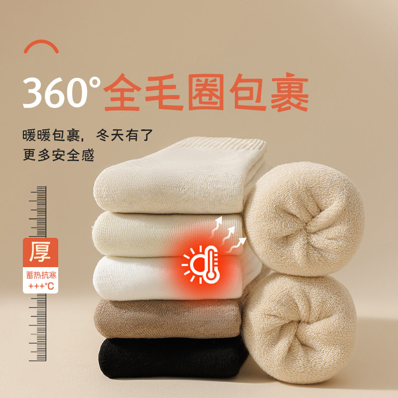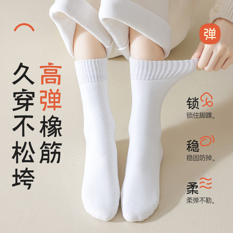 【送3双同款】秋冬新疆棉厚款中筒袜纯棉纱线毛巾底袜子男长袜女