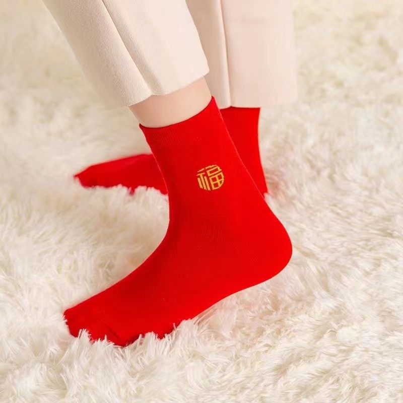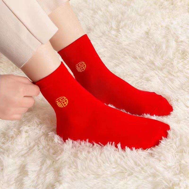 本命年红袜子男女结婚喜庆大红袜中筒红色袜子女结婚情侣袜