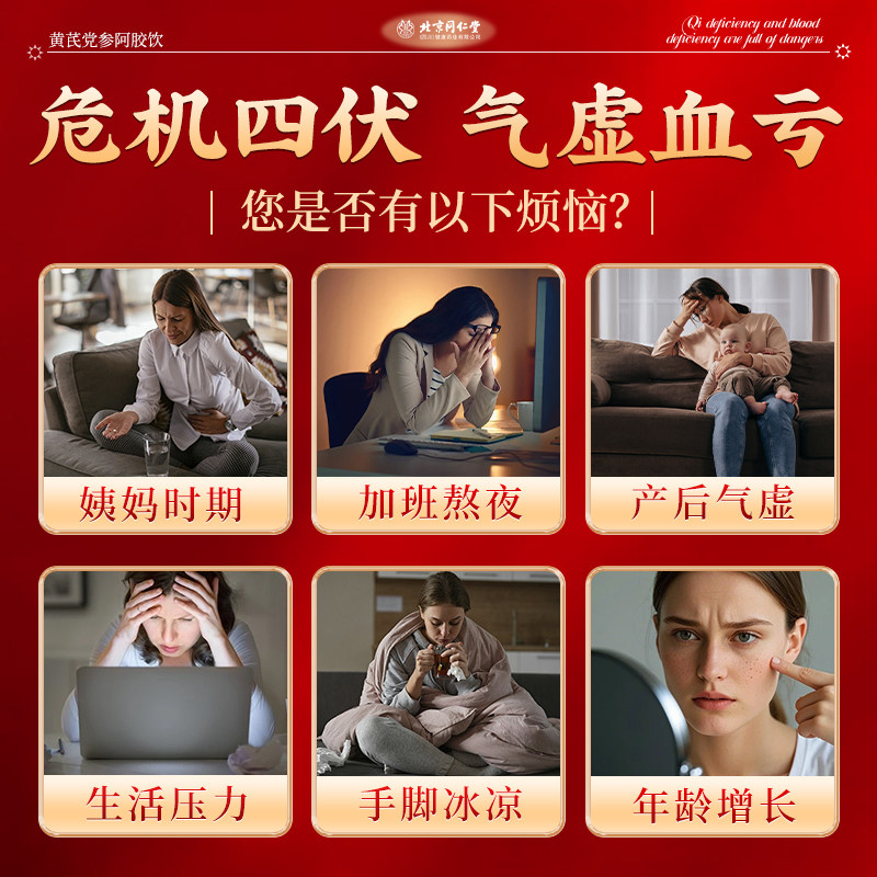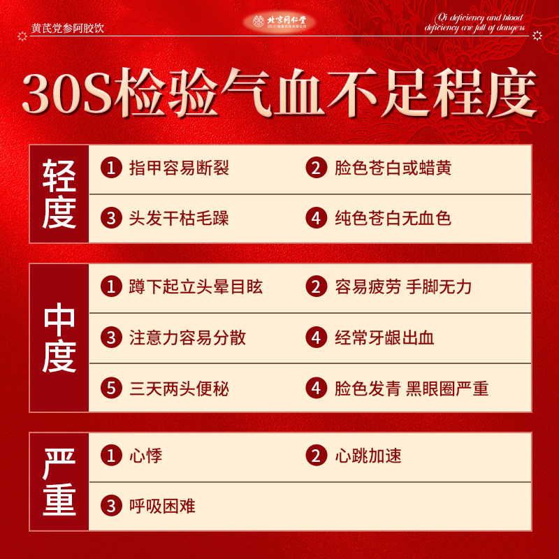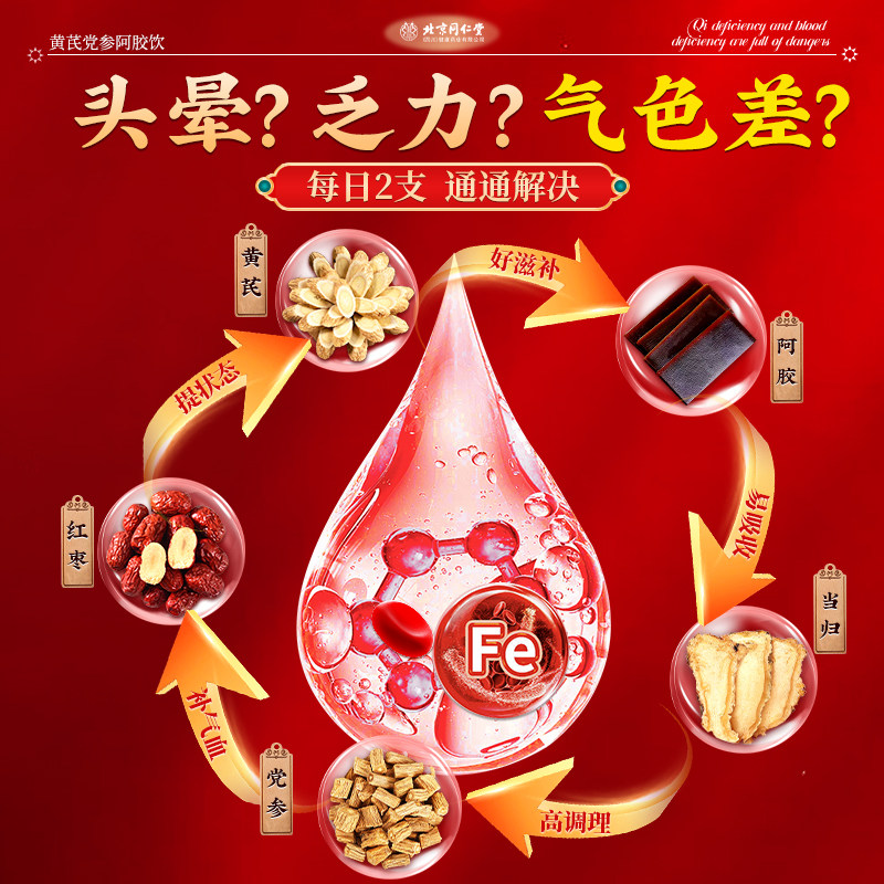 黄芪党参补气血阿胶口服液女生补气养血调理不足女人贫血补品送礼