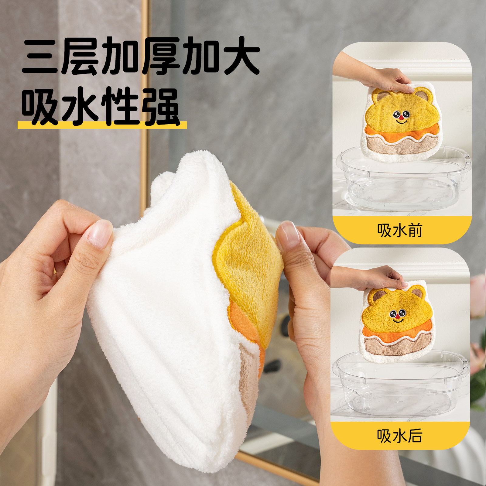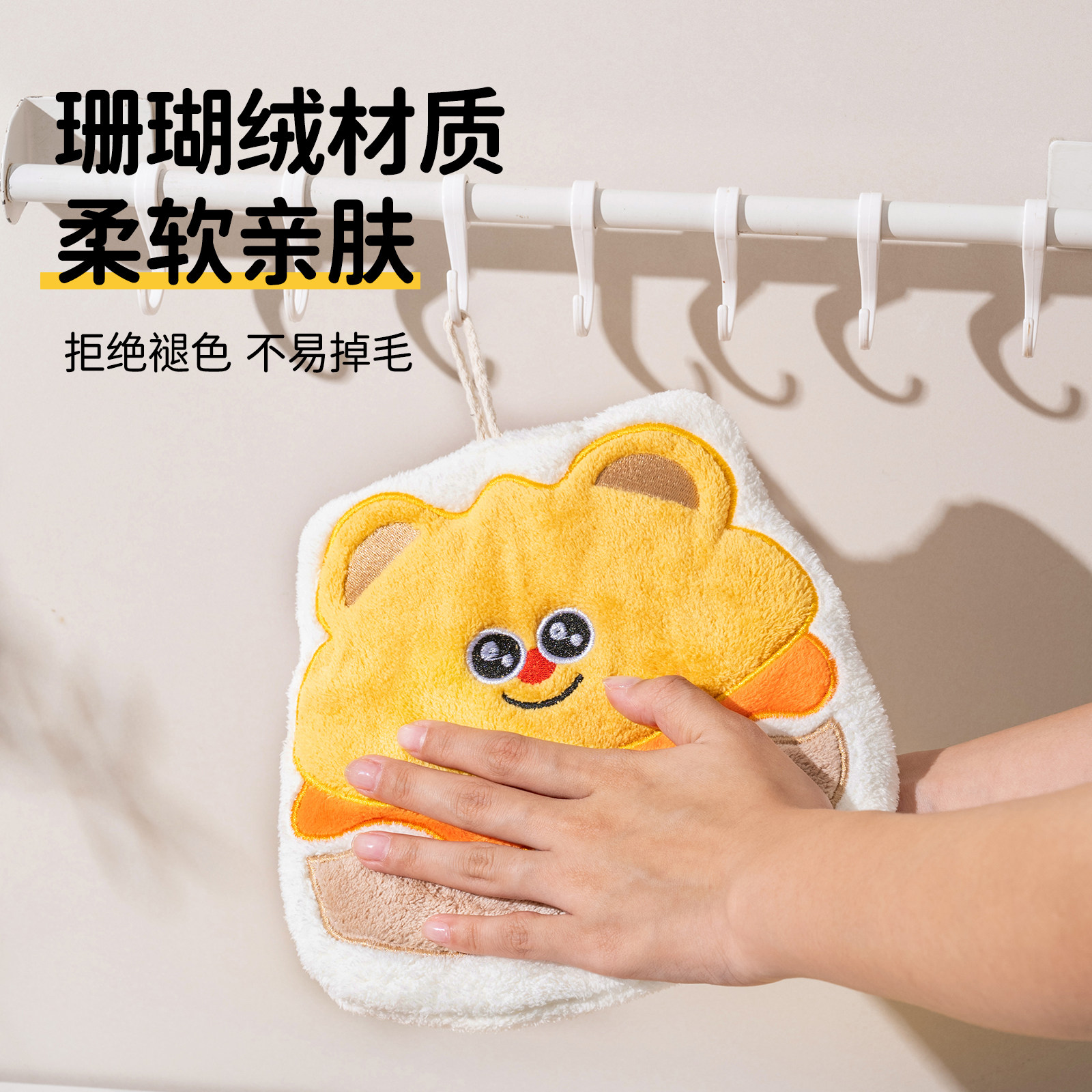 卡罗特擦手巾挂式可爱加厚珊瑚绒厨房吸水抹布卫生间儿童卡通毛巾