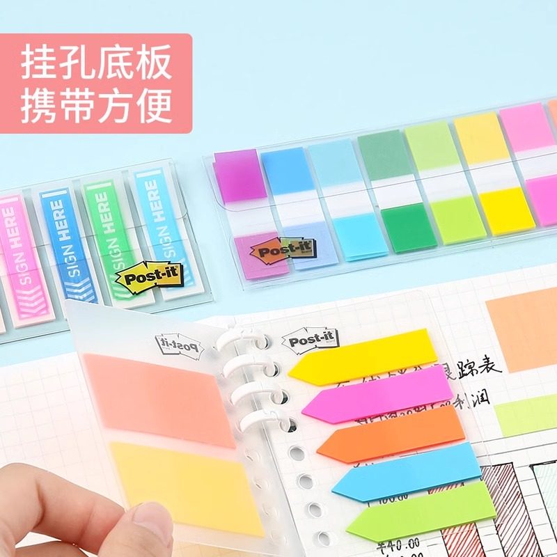 美国3M便利贴post-it报事贴合宜系列指示标签贴荧光透明色687-5A官方旗舰店箭头重点标记百事贴小条防水彩色