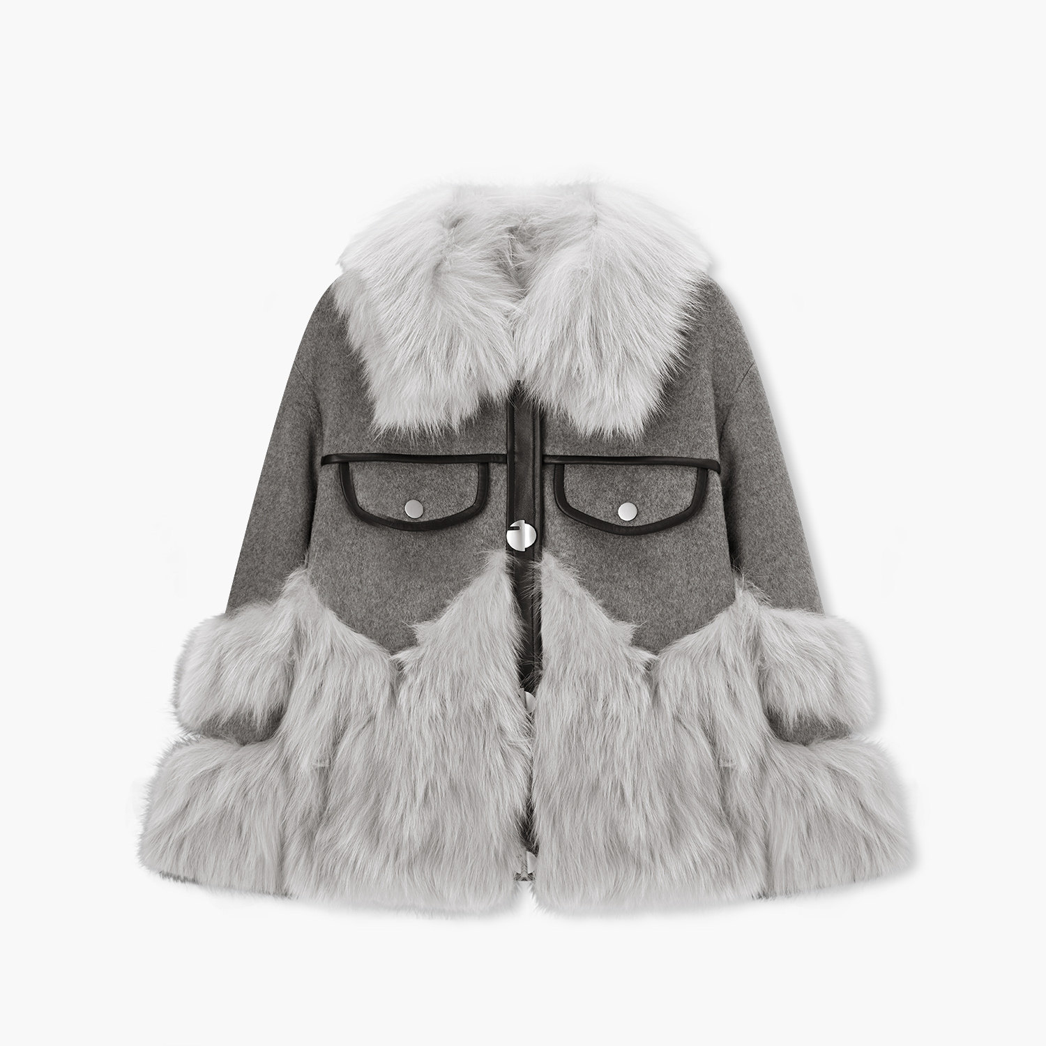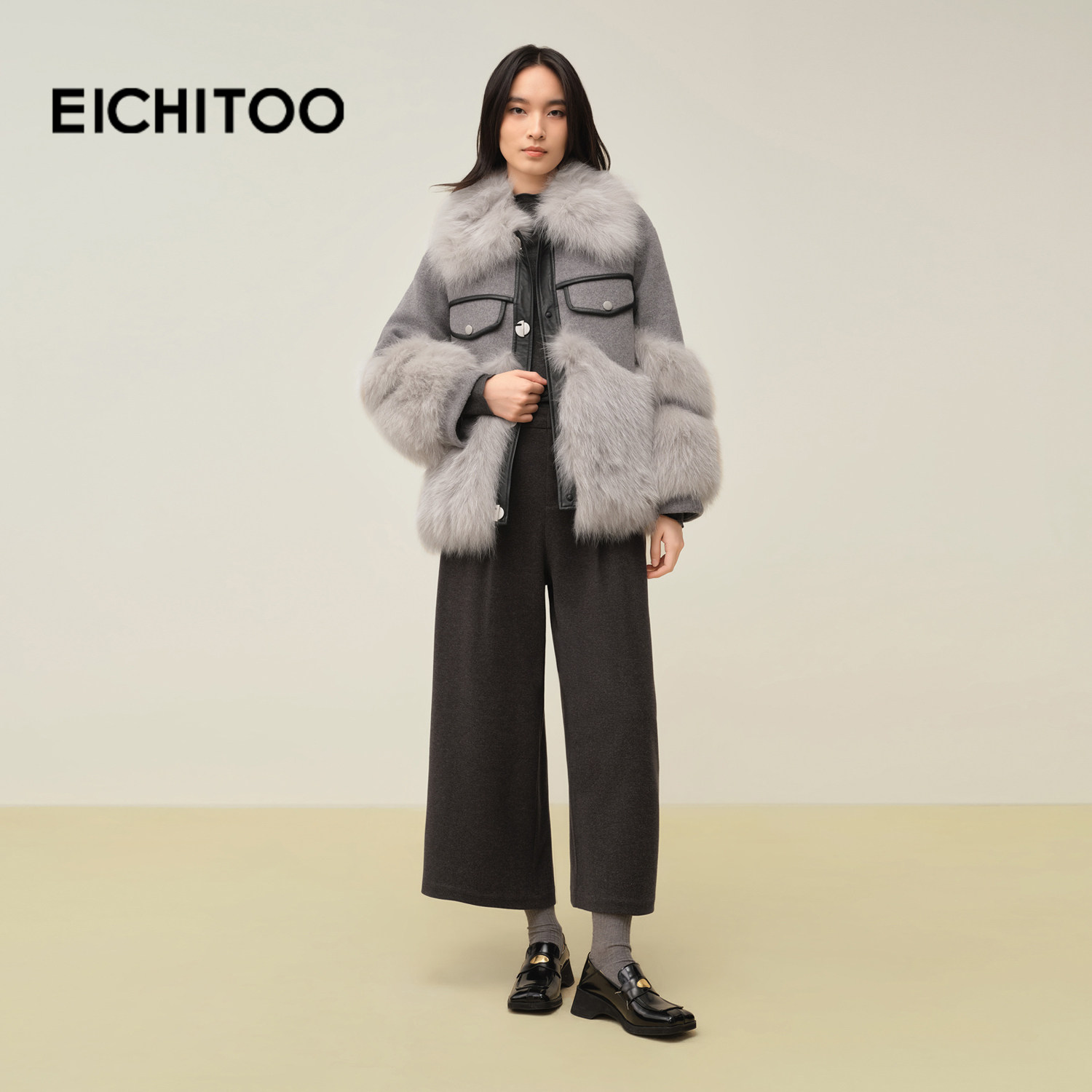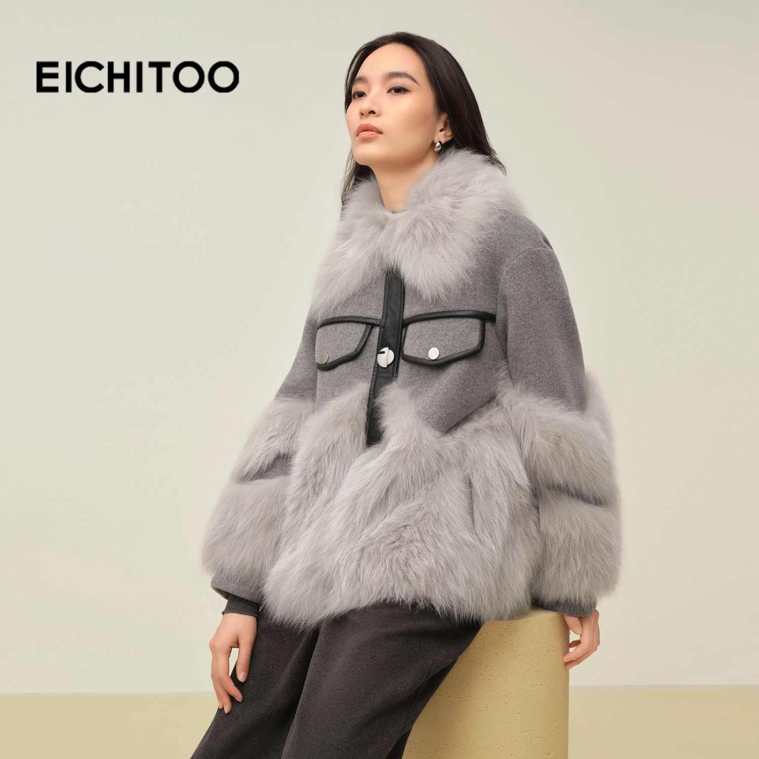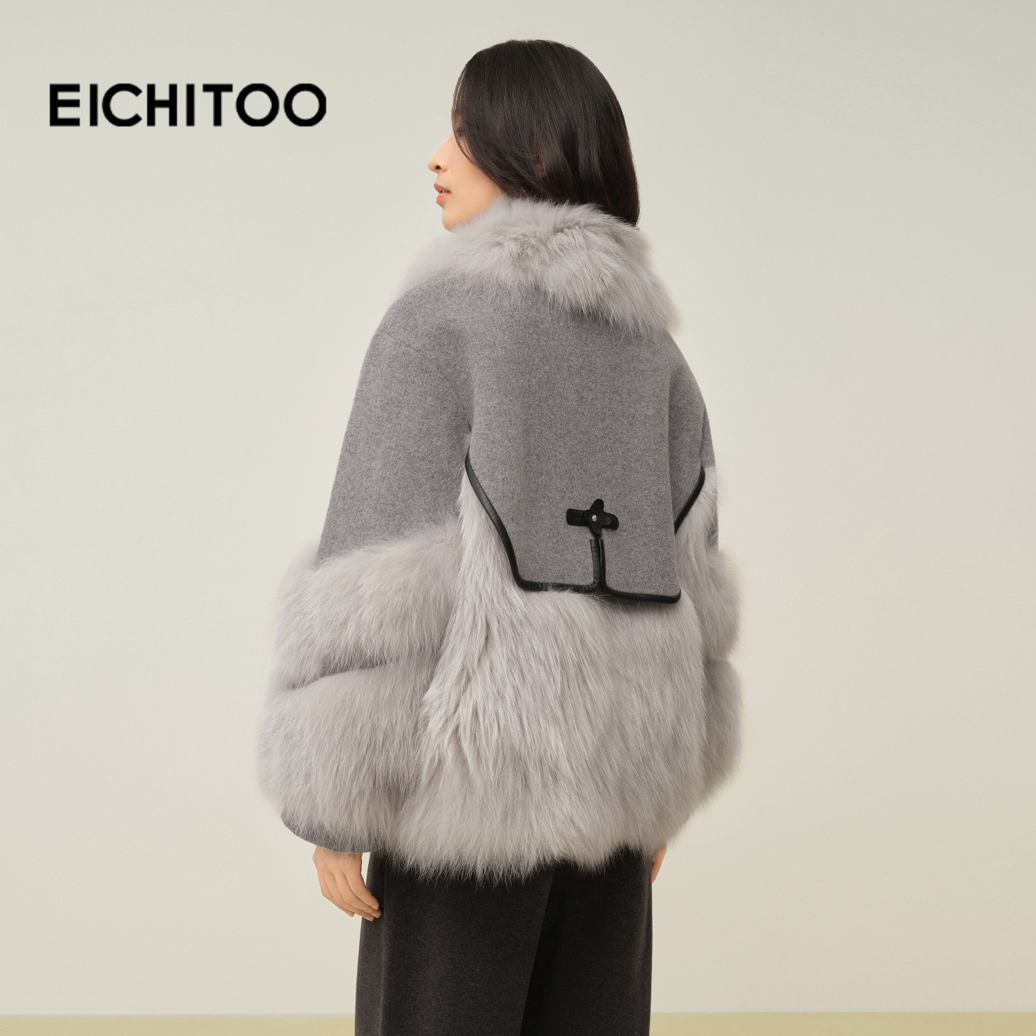 爱居兔毛呢拼接狐狸毛皮草鹅绒服女2025年冬季新款轻奢宽松外套