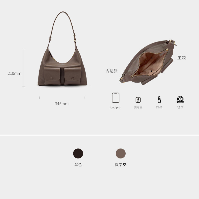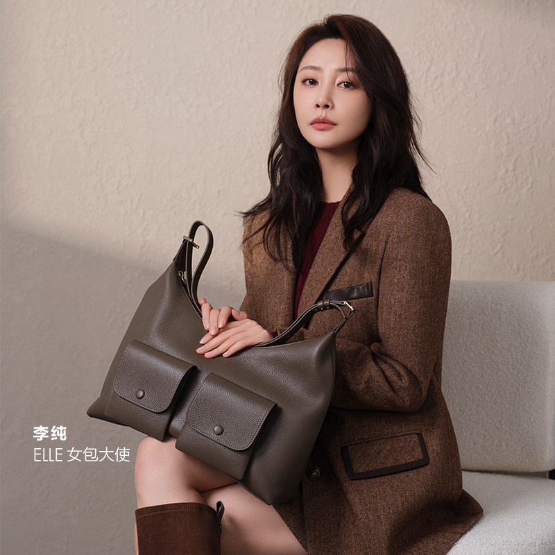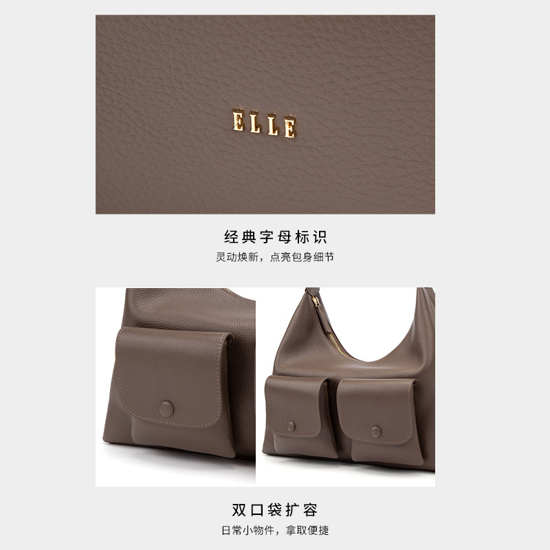 明星同款ELLE女包真皮荔枝纹hobo包托特包大容量通勤腋下单肩包包
