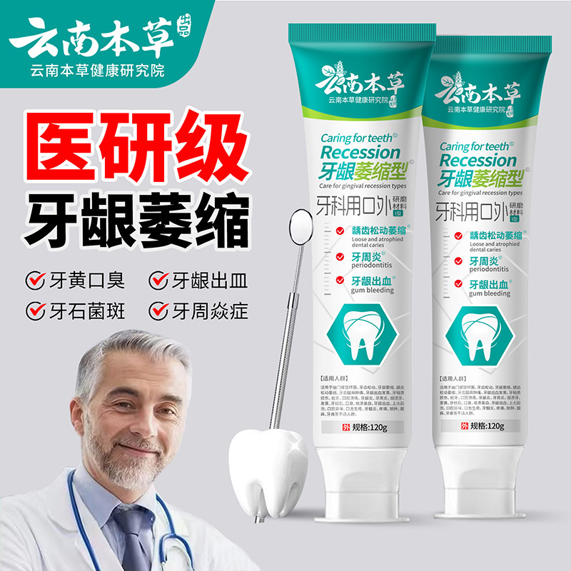 云南本草牙龈萎缩专用医用牙膏口腔护理脱敏牙齿松动牙龈出血肿痛