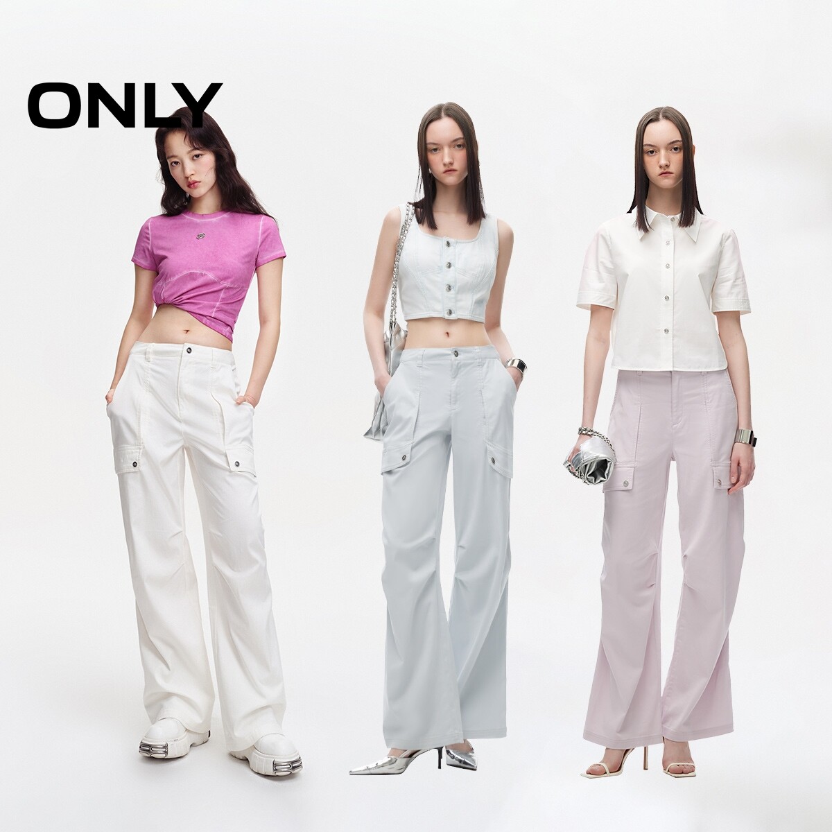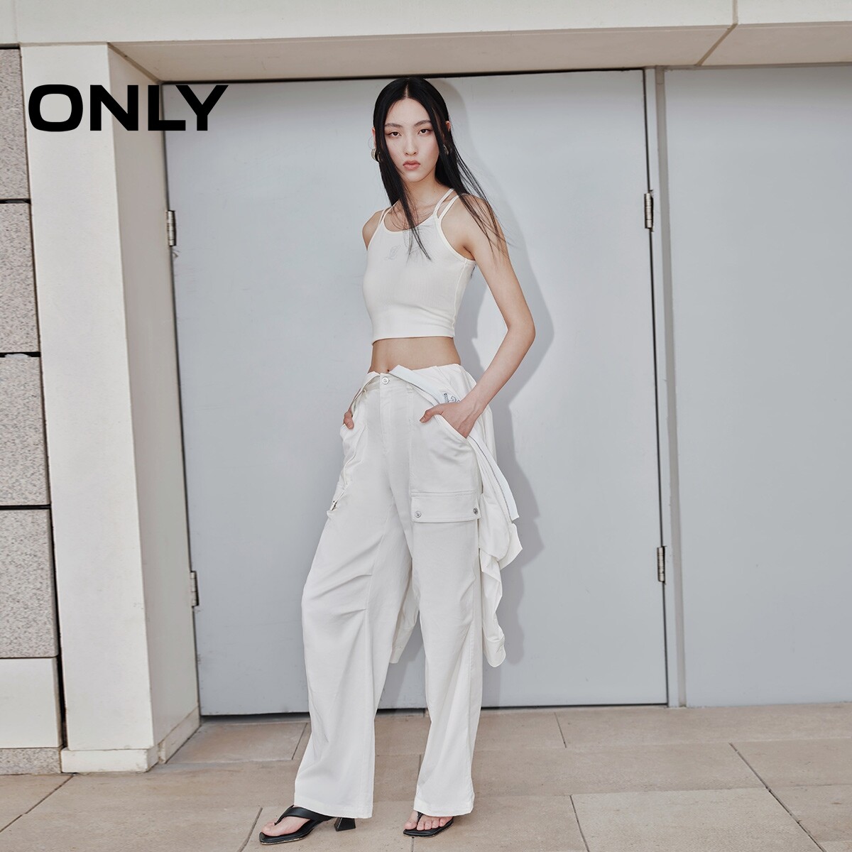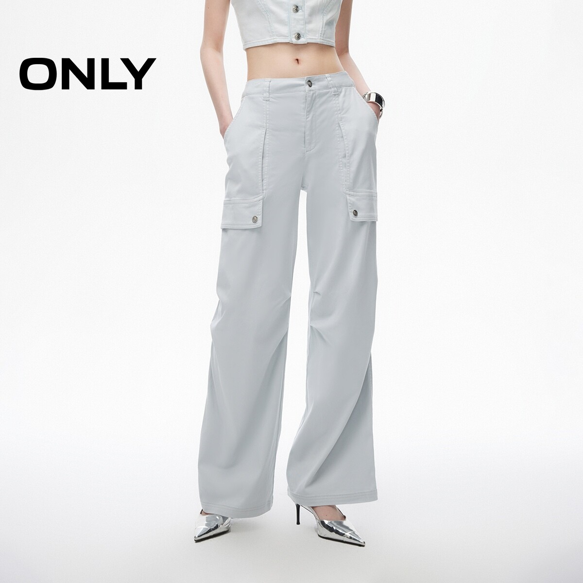 【ONLY奥莱】春季新款百搭休闲高腰口袋阔腿工装休闲裤女