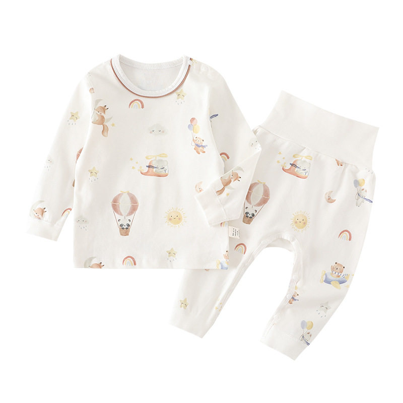 婴儿高腰套无骨A类纯棉分体套装高腰护肚保暖睡裤春秋按扣肩扣
